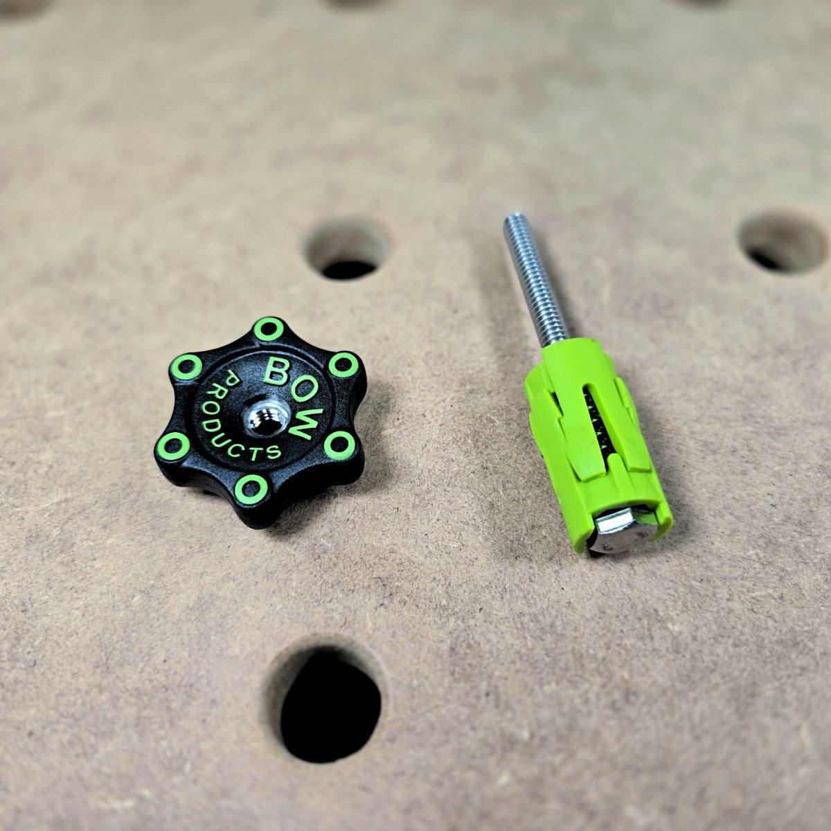 - Kit includes six Expandable Dog Assemblies, six Hex Bolts ¼-20 x 3in, and six Low-Profile Ergonomic Bow Knobs to accommodate standard tabletop fixtures