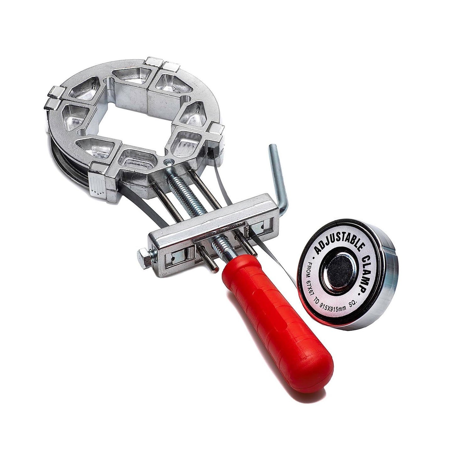 For that reason, it's rare that you'll find a solid-steel band clamp with such high-quality corners and a band that won't mishape under genuine workshop conditions. The Baladonia steel band clamp is a US patented design and has four, heavy-duty but light cast alloy removeable corners that can clamp either a triangle or rectangle using three or four corners. By removing all but the base corner, you can clamp virtually any sided shape you wish.