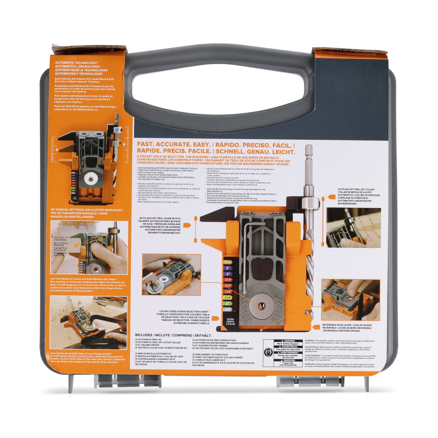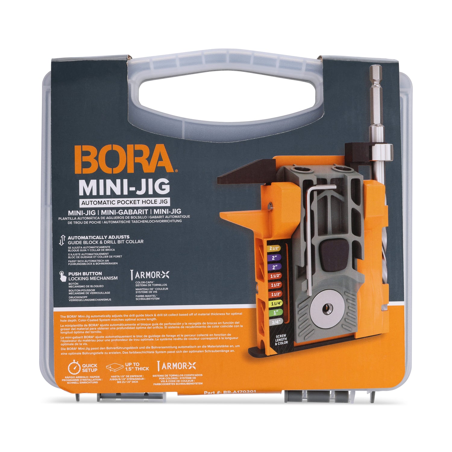 - Self-Adjusting Drill Guide Block with Screw Size Guide: no more measuring or guessing, the BORA Tool Mini Jig sets the drilling depth and chooses the right screw for you
