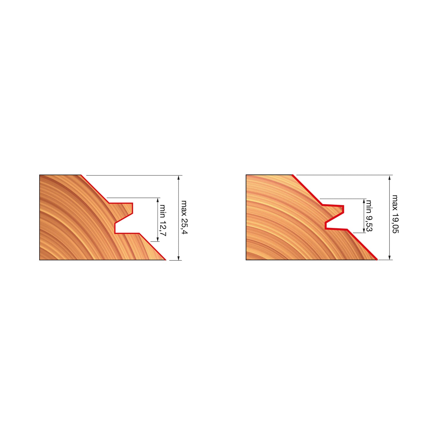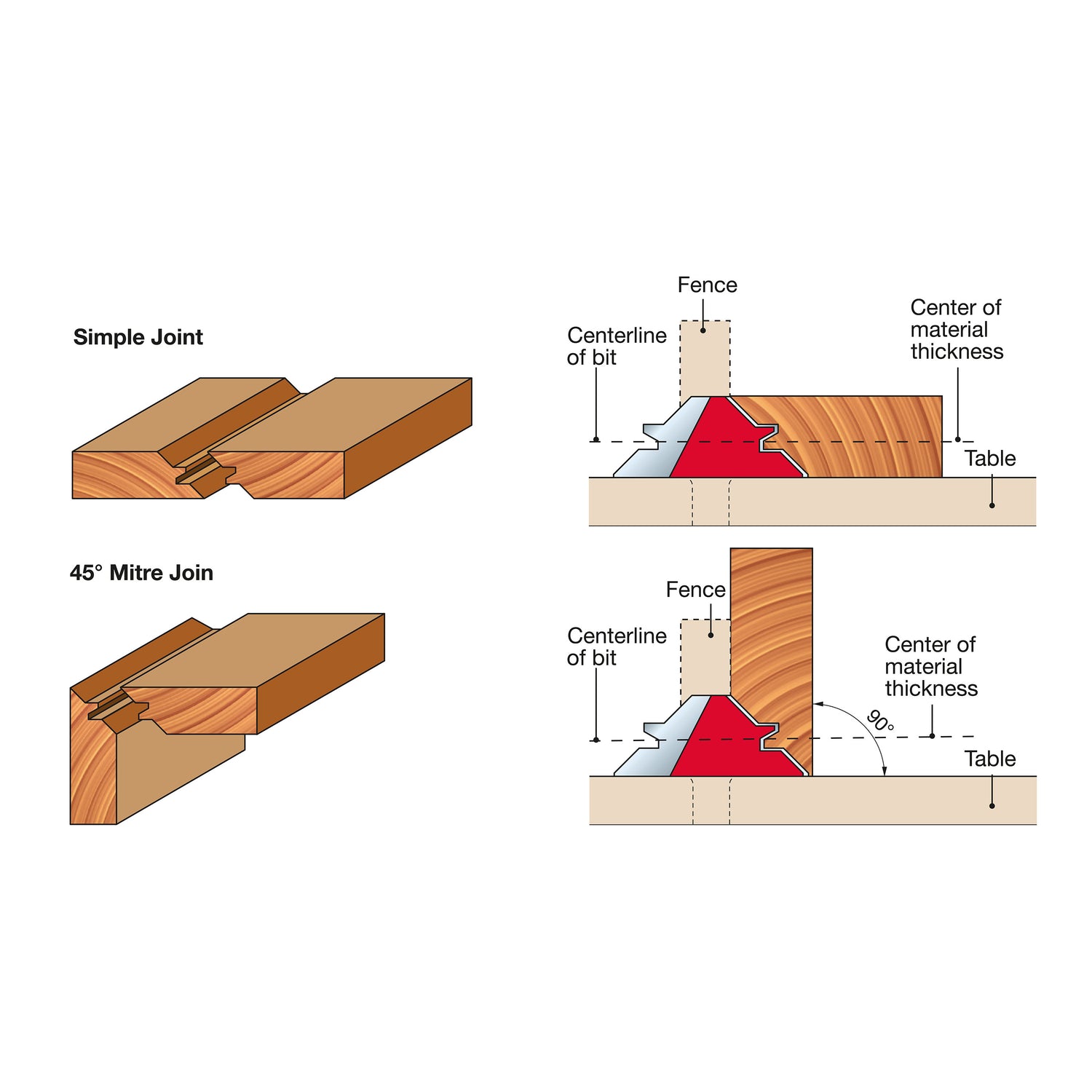 Create rock-solid interlocking corner joints with Freud Lock Miter Bits. These bits are designed to rout one piece horizontally on the router table, and the other piece standing vertical. For precise 90 degree joints - with one bit routing the tongue and the other bit routing the groove. Suitable for routing solid hardwood or softwood on table mounted routers or CNC machines only.