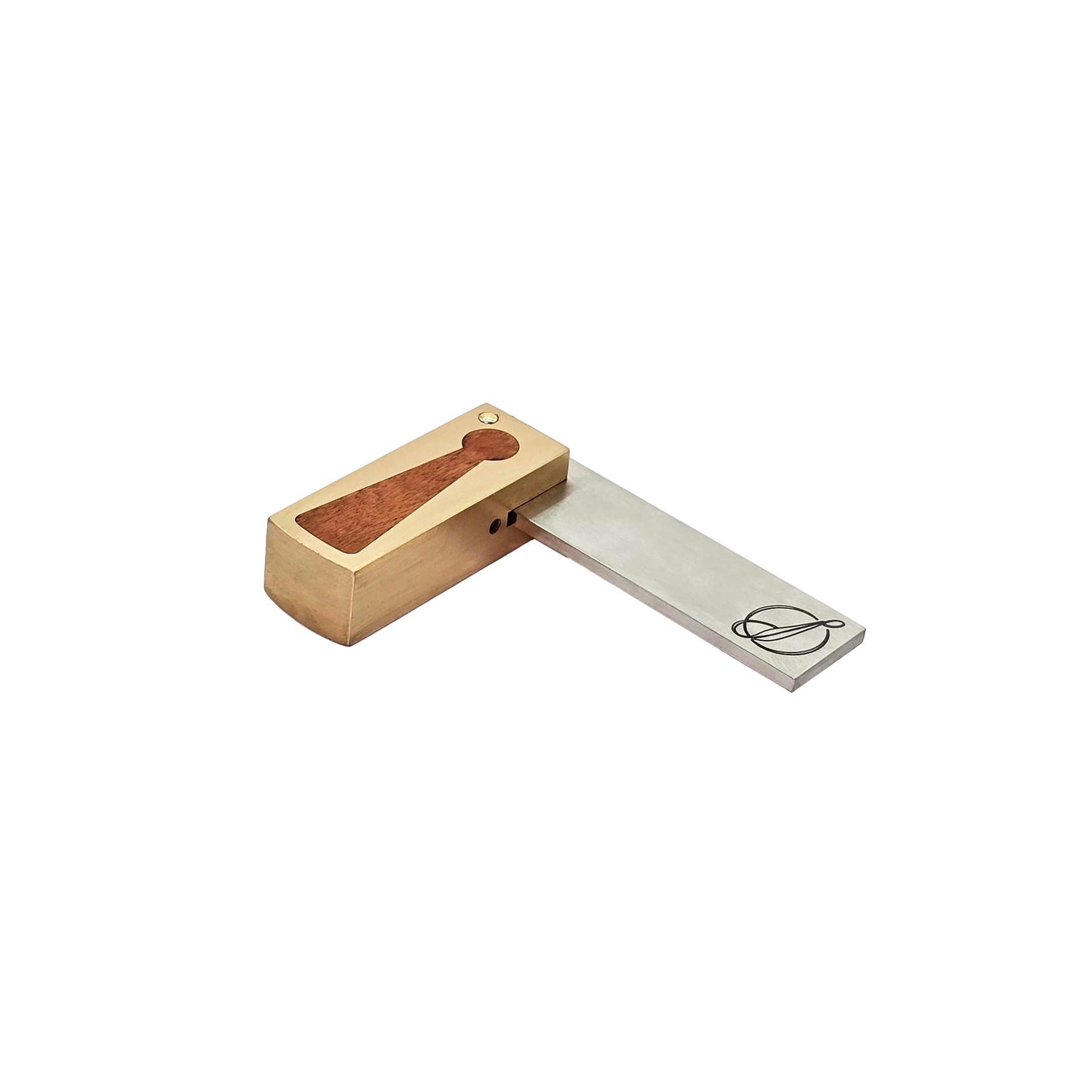Ironbark squares are carefully made with world-class materials. The stock is 16mm thick brass with a Mulga inset – celebrating the famous durability and beauty of Australia’s desert hardwoods. The blade is machined from 3mm thick 304 stainless steel, which is specifically chosen to deliver stability and wear resistance. Marking knives can be used without danger of scratching or gouging the blade.