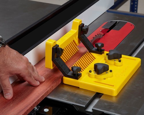 The included featherboard is reversible for left and right hand feeds and‚ also highly recommended, it can accommodate the Vertical Featherboard Attachment for an added dimension of safety and protection against kickbacks. The low profile design can be used on your smallest tables.