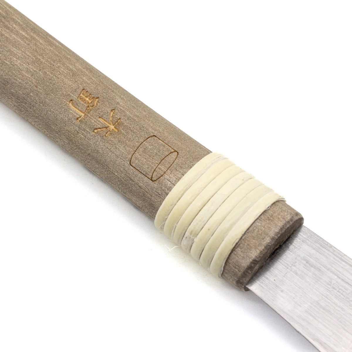 This craftsman made saw is a professional quality flush cutting kataba saw handmade by 3rd generation Saw Smith Daizo Mitsukawa. The saw is single-sided with crosscut teeth. The blade is tapered and flexible, allowing it to be gently curved for flush-cutting dowels, wooden nails, etc.