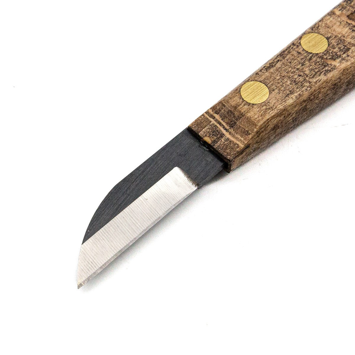 A carving knife is a very different animal from a chisel and must hold up under different pressures to do its job. Narex PROFI carving knives are made from high strength Magnesium-Vanadium alloy that's been hardened to 61HRC, so it will hold a cutting edge longer than knives made with inferior steels. The handle is made of Beech wood. The surface is stained and waxed.