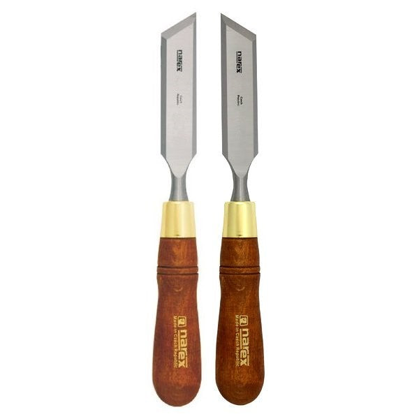 Produced in the Czech Republic, Narex skew chisels are forged from highly alloyed chrome-manganese steel, and heat-treatment hardened to Rc59. The blades are accurately ground to 32° and fully sharpened so are virtually ready for use out of the (included wooden) box and meet the German DIN 5139 standard. Finished with hornbeam handles and solid brass ferrules, each size is sold as a set of two (left and right hand skews) and are a solid timber cabinetmaker's dream to have on hand.