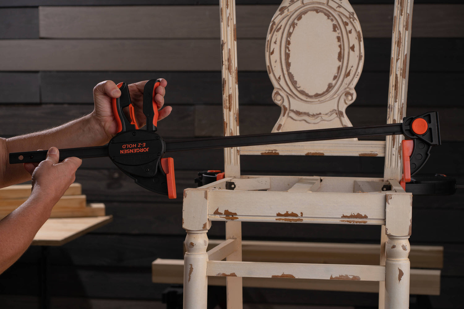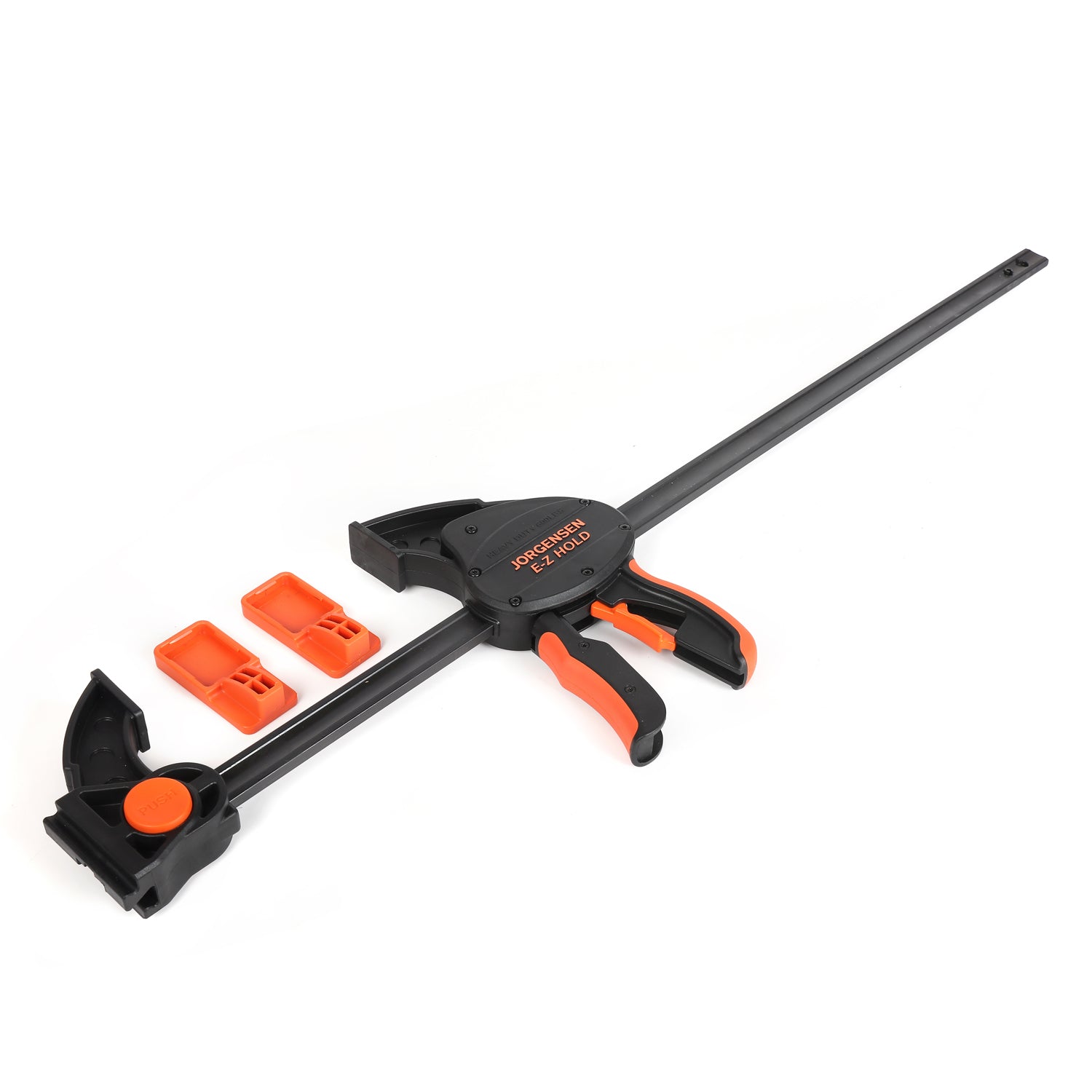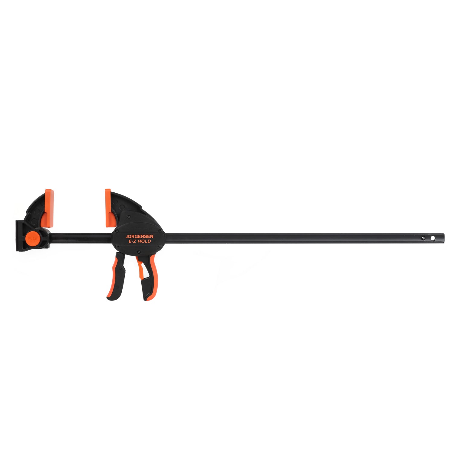 The Jorgensen E-Z Hold bar clamp has become a staple of so many workshops due to it exclusive patented feature to expand the opening capacity by joining two clamps together with no tools or added accessories needed. The patented head design allows any two Jorgensen E-Z Hold bar clamps to be joined together for greater clamping capacity. By quickly flipping the head you can join two clamps together and also increase total clamping capacity by clamp capacity of the added clamp.