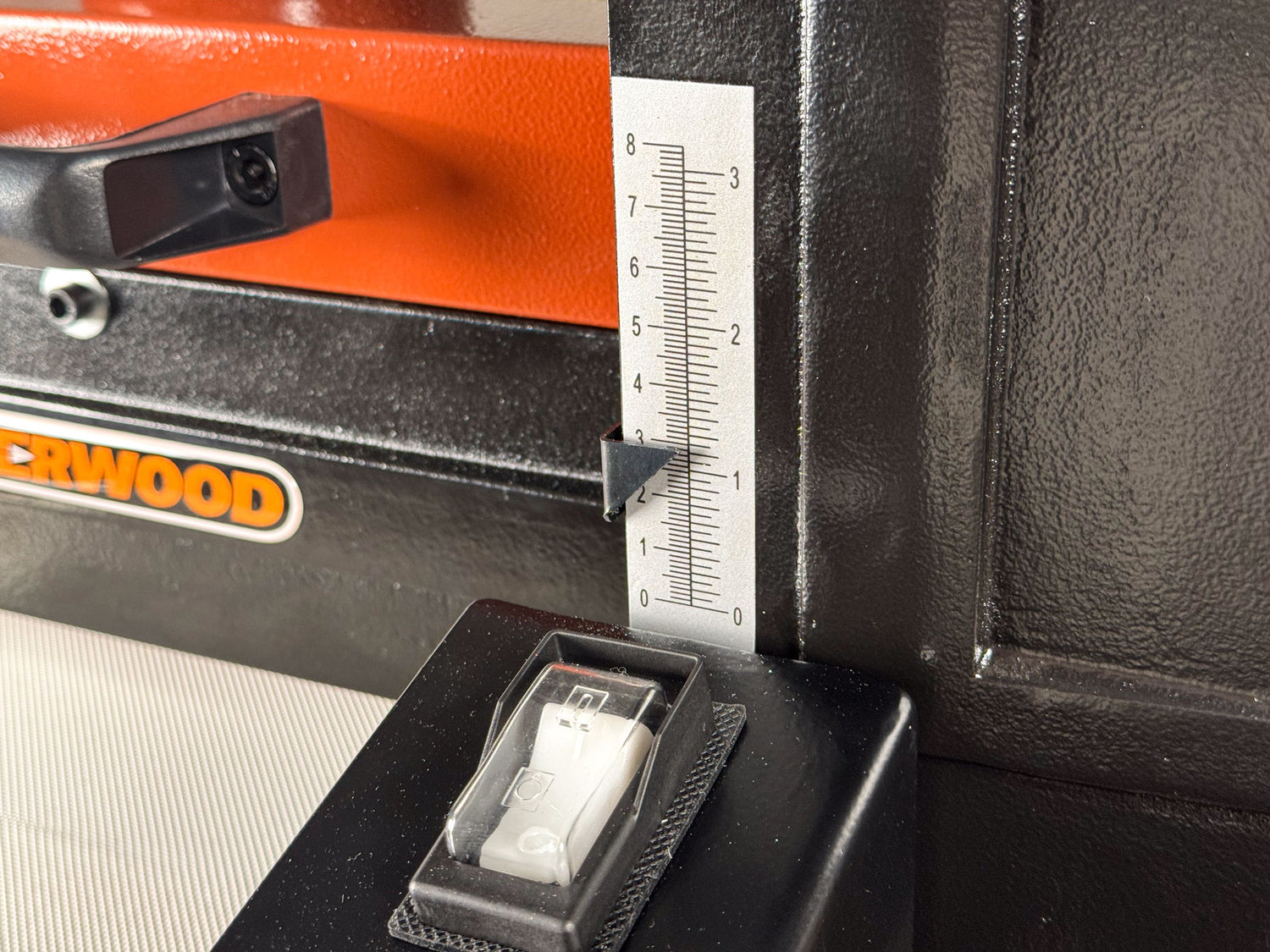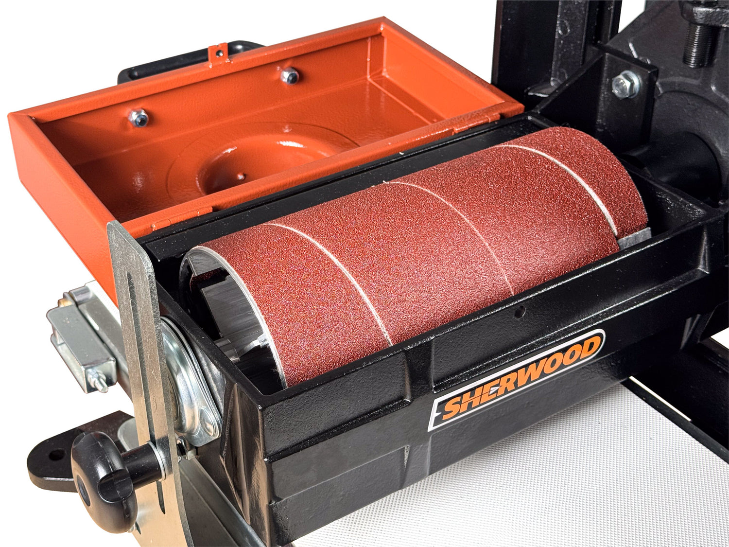 The Sherwood 10in Benchtop Drum Sander is a precise sanding machine. The height adjustment mechanism is finely adjustable – one full rotation of the handle raises or lowers the head by 1.5mm, allowing you to creep up to the exact stock thickness you need without the risk of overshooting.