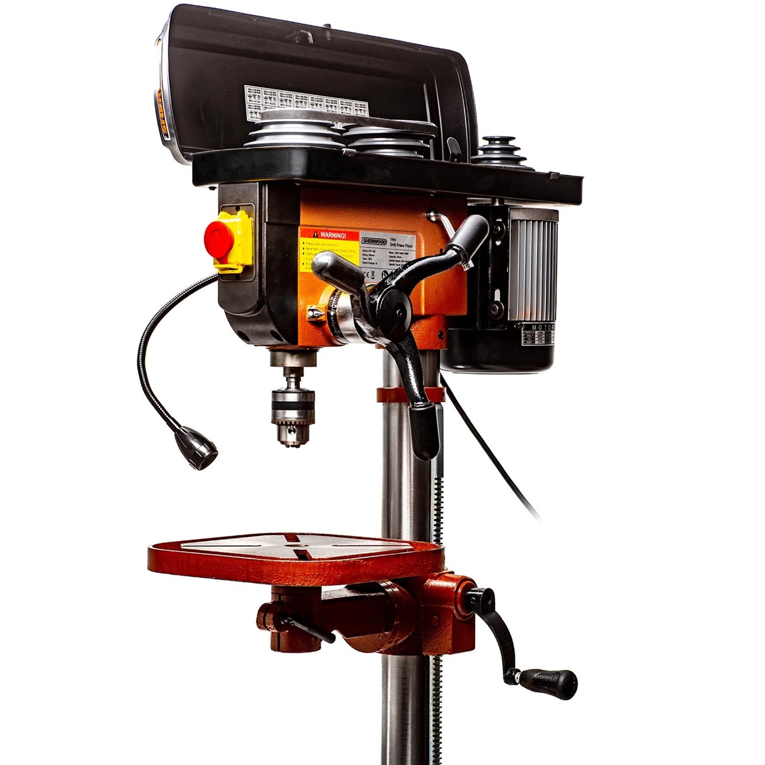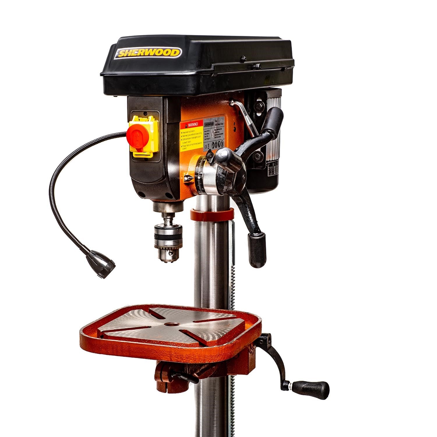 The Sherwood 750W Floor Standing Pedestal Drill Press is engineered for serious woodworkers, combining high torque, precision, and robust construction. The heavy, stable base, large vibration-absorbing head and decent size working table all combine to make it great for all jobs and is finding itself in many satisfied workshops. An LED working light on a flexible arm is now included to illuminate the work space for better accuracy. Every detail – from the motor to the spindle – is thoughtfully designed by woodworkers, for woodworkers to deliver outstanding performance.