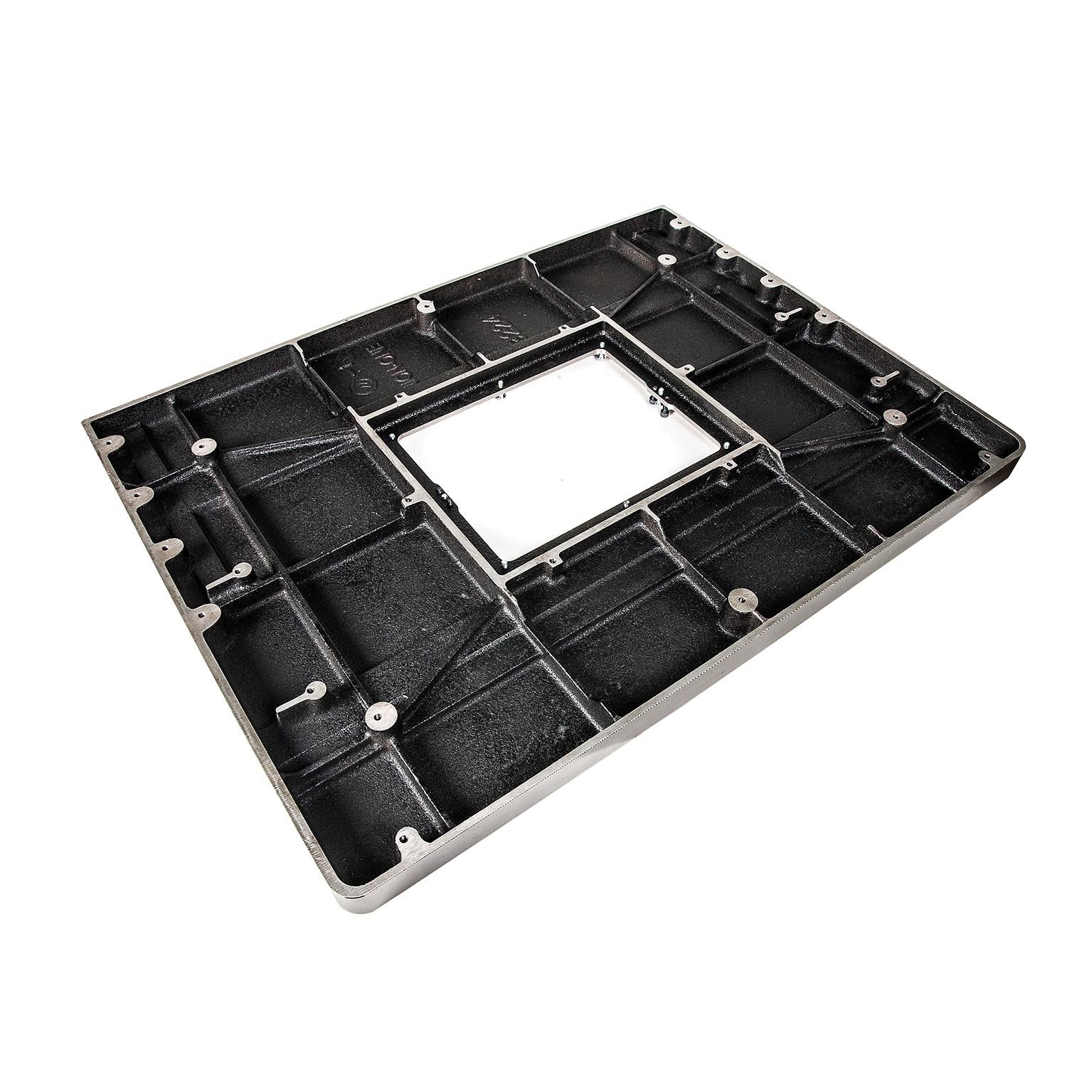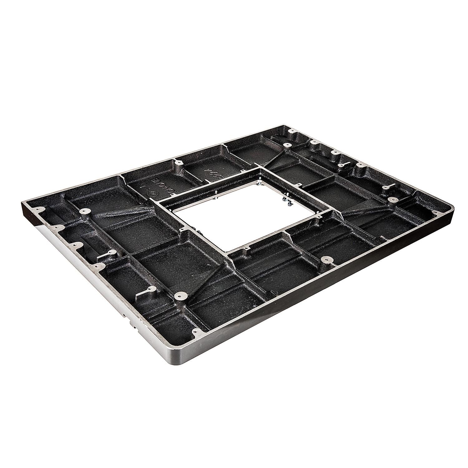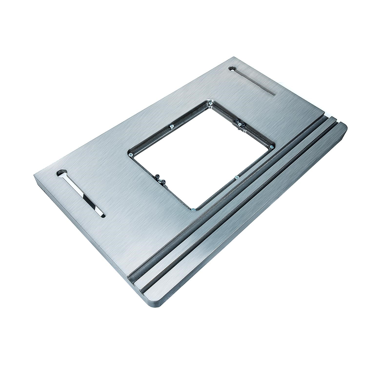 You'll find the mount plate aperture has 10 levelling screws with two clamping holes provided. Paired with the levelling grub screws in the Sherwood router table mount plates and lifts, you can get a perfectly flat surface on all four sides where the mount plate meets the cast-iron top.