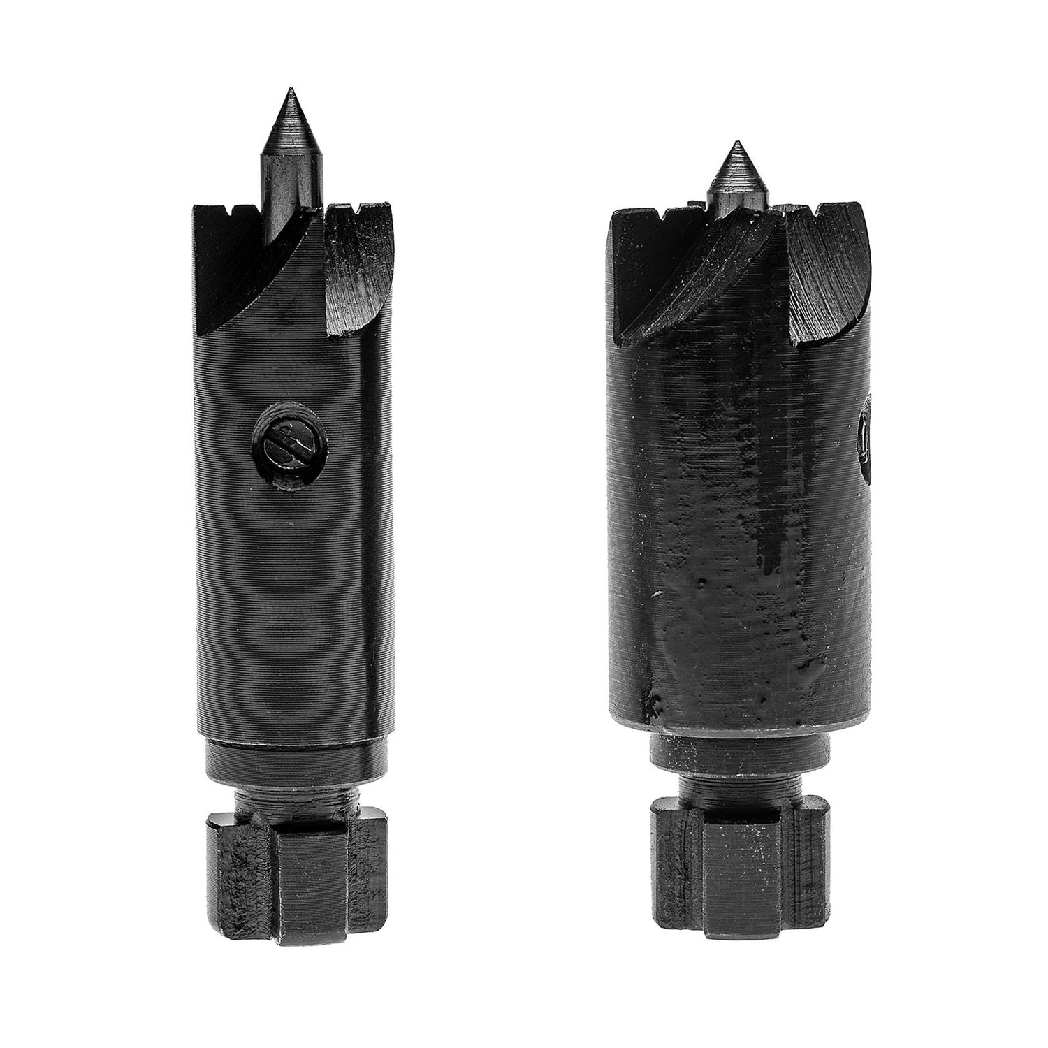 Spring-loaded centre pin with 4 solid prongs to dig into wood. Available in two diameters.