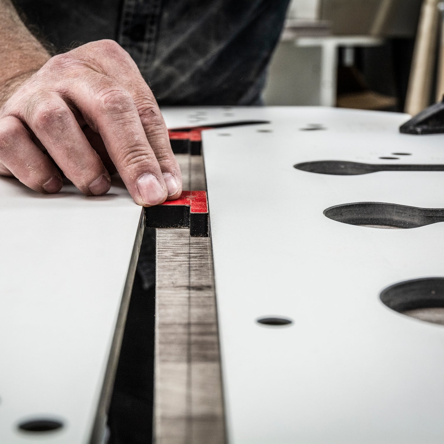 Crafted from CNC-machined Compact Grade High-Pressure Laminate (HPL), this jig offers exceptional precision, strength, and durability for demanding applications. It features 3mm, 10mm, and 35mm inset options, paired with innovative front-edge alignment technology, making it ideal for handling scribed, out-of-square, and non-standard worktops with ease and accuracy.