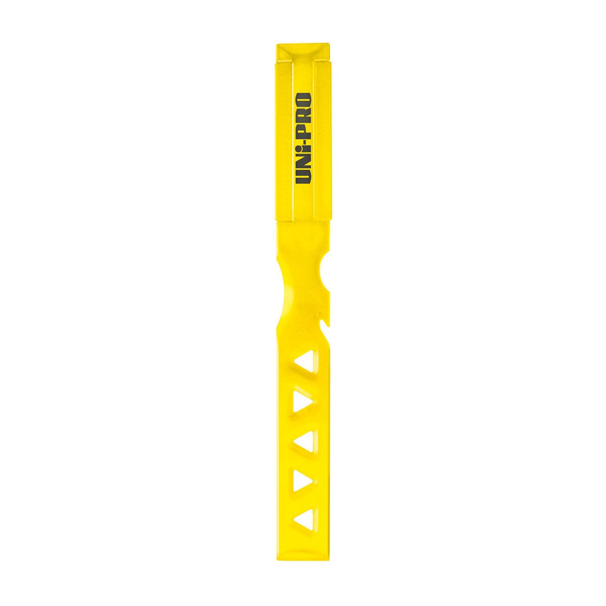 The UniPro Paint Stirrer is the perfect tool for ensuring well-mixed pigment and consistent, professional results. Paint is forced through the triangular sluices to break up clumps, while the stiff, flat blade moves a large volume of paint for rapid mixing. And the clever little notch in the side allows you to hang the stirrer on the inside edge of the can – no more messy paper towels getting stuck to your stirrer!