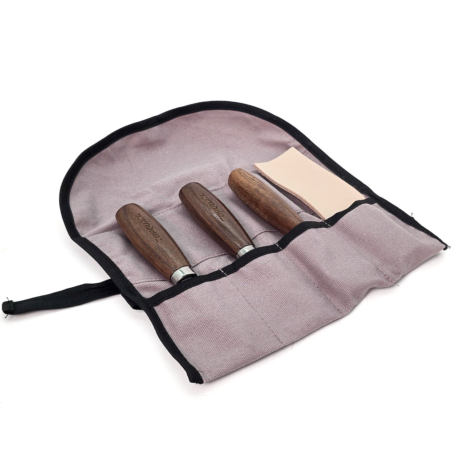 Torquata Set of 3 Carving Knives with Leather Strop & Sharpening Compound in Canvas Roll