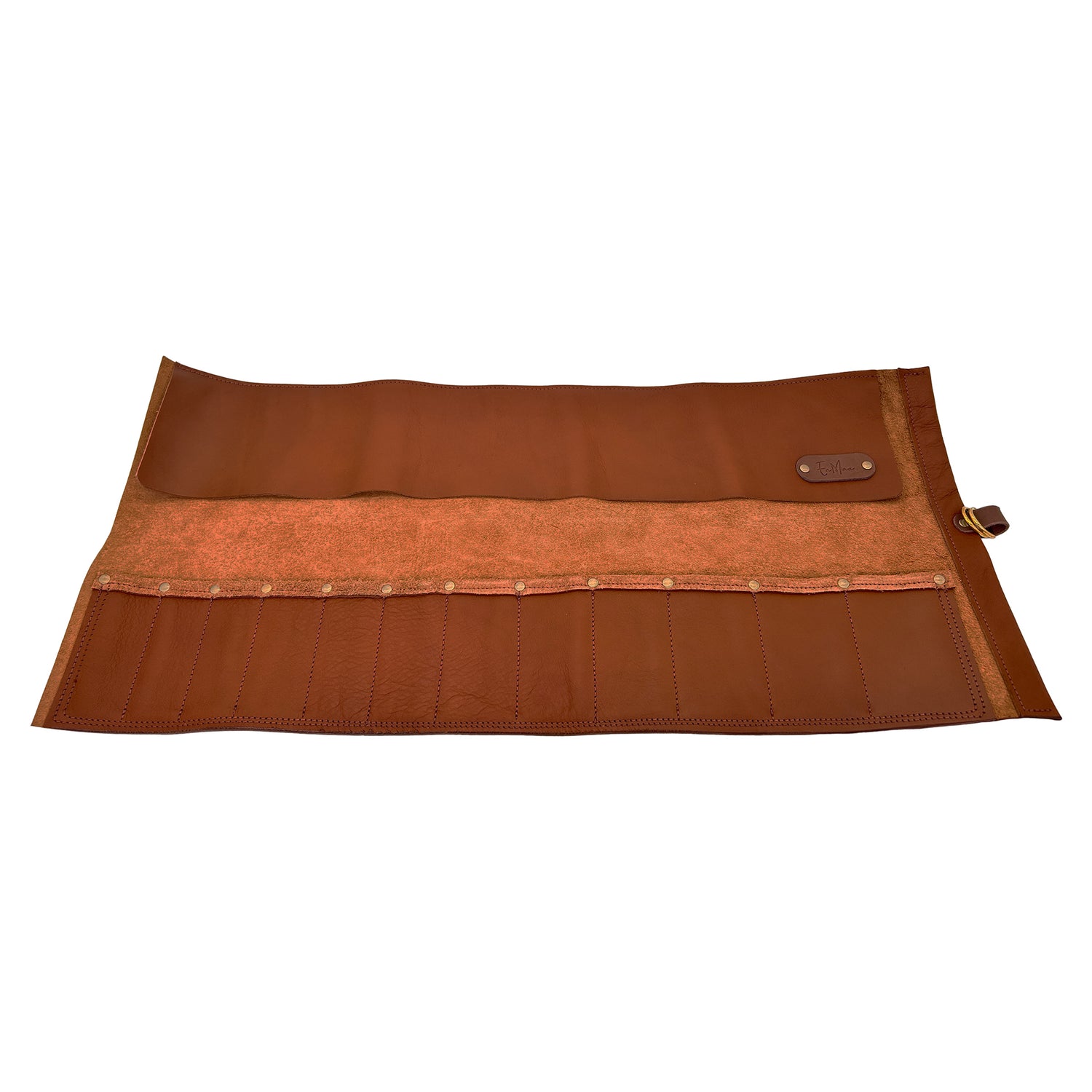 En Mina 12 Pocket Leather Chisel Roll Tan