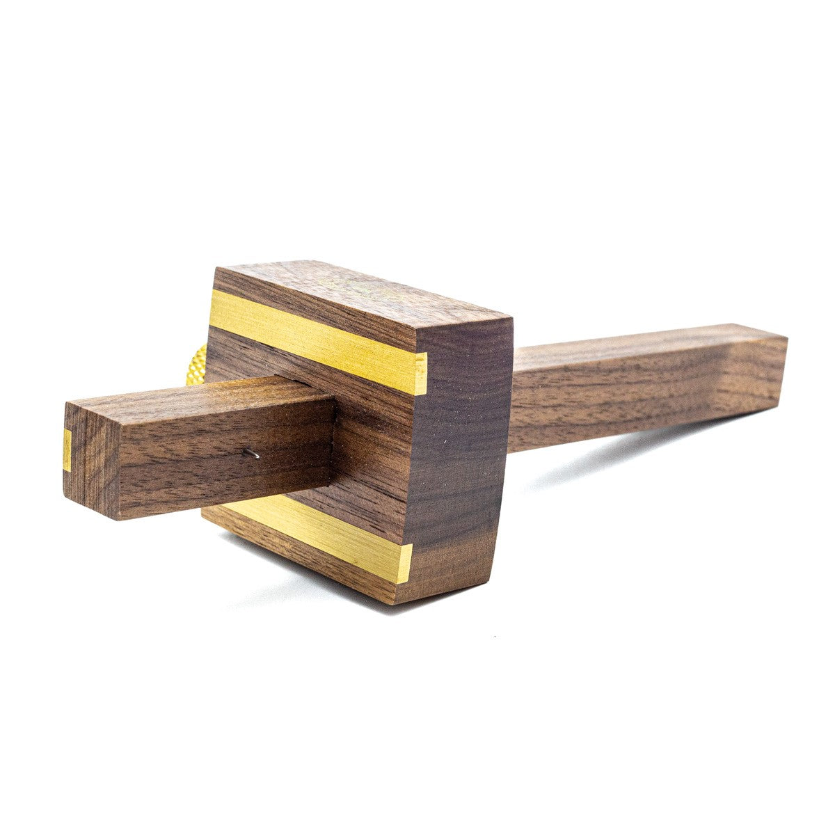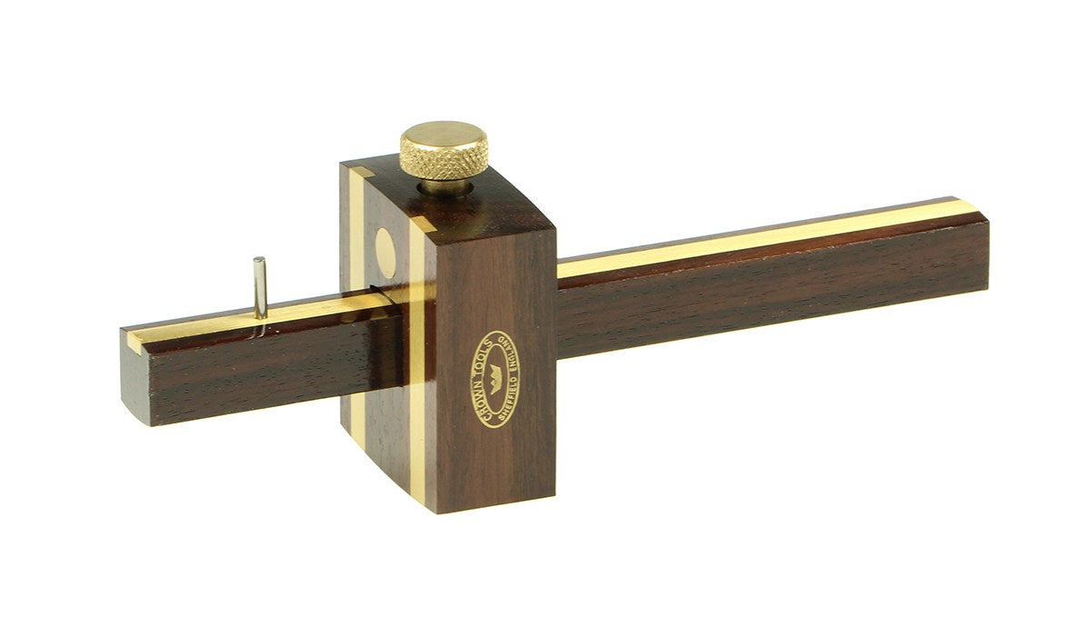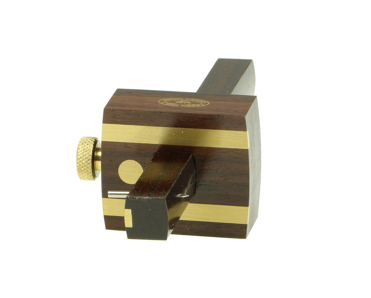 A solid Marking Gauge built to last a lifetime. It is produced from Rosewood with a hefty 18.5mm arm measuring 203mm long, and a solid 3.5mm-thick solid brass bar which runs along its entire length.