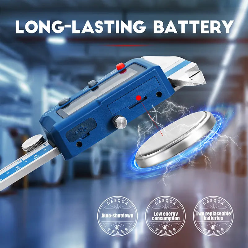 Dasqua’s Digital Vernier Caliper is packaged with two 230mAh high-capacity 3V/Cr2032 lithium batteries, significantly extending the battery life. Featuring intelligent sliding automatic start-up and automatic shutdown after 5 minutes, this precision Vernier Caliper provides long-lasting and reliable battery performance that ensures your measurement needs are always met.