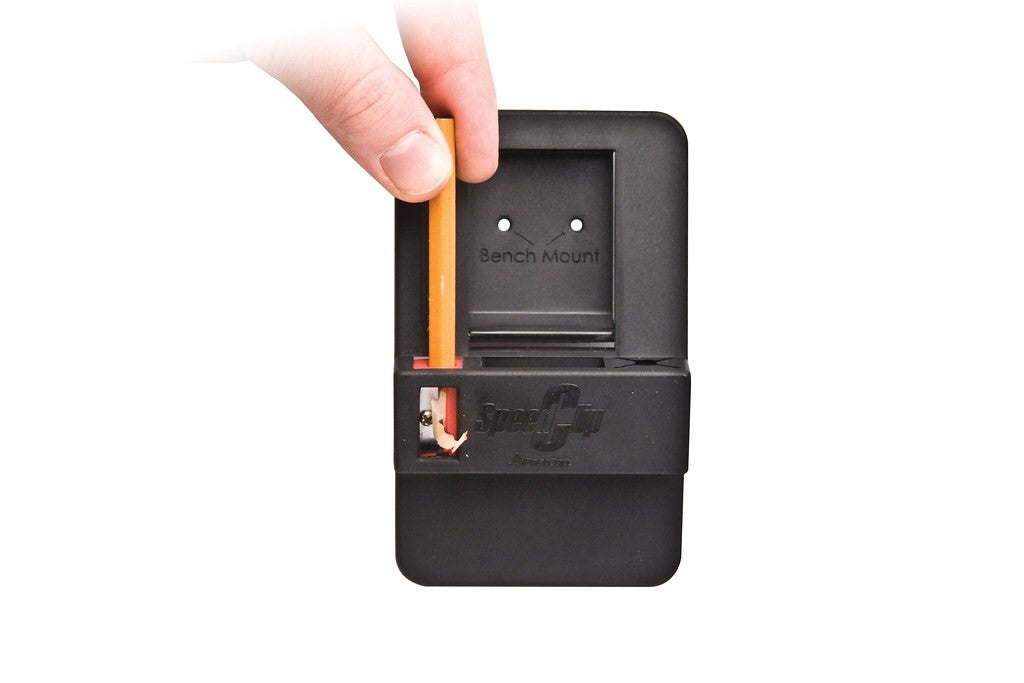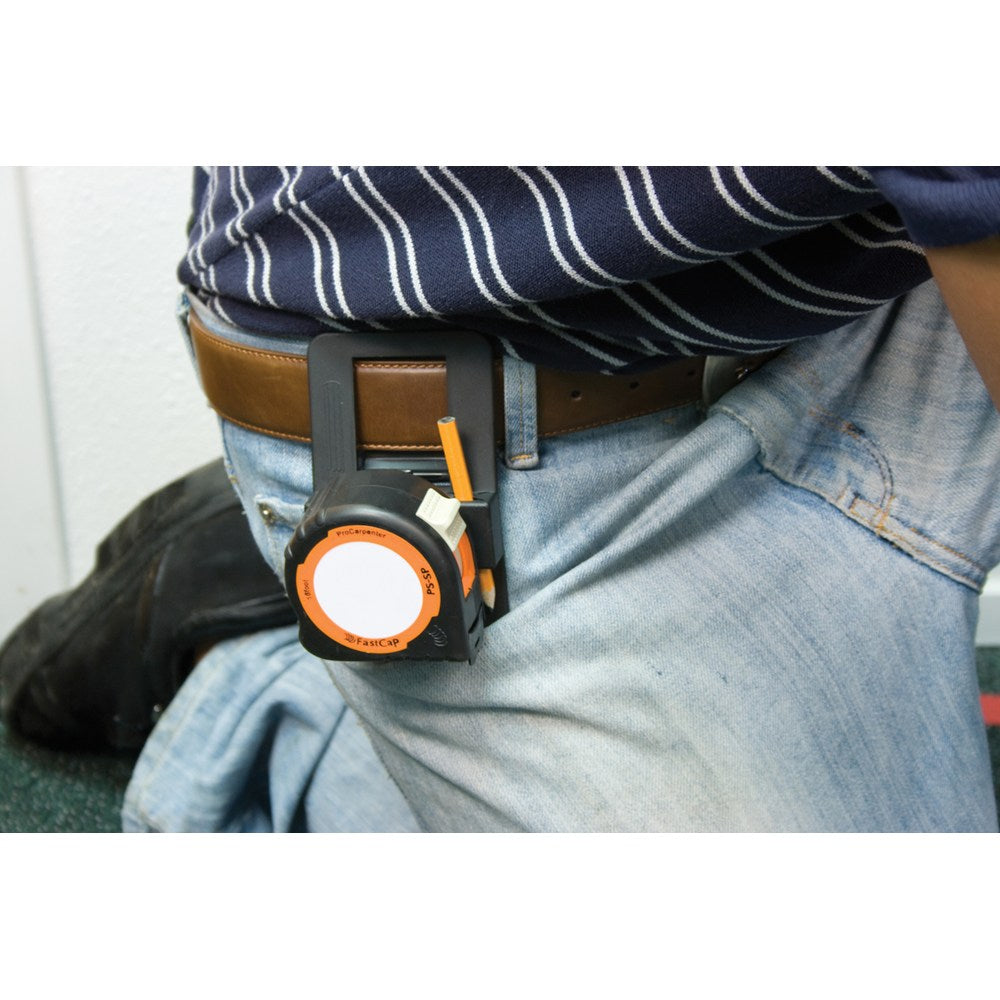 Now you can measure and you can mark your work; but if you are like us, you'll put those tools down and lose them 800 times a day. So we have also included the FastCap Measuring Tape SpeedClip. A favourite tool of everyone at Timbecon; this belt-mountable holding system has been designed to hold your tape and pencil. It includes a handy pencil sharpener too! It can also be mounted to any work surface you typically use. Mean\ing you can have a dedicated tape and pencil location in the shop. There are two tape measures in the kit so we included two speed clips.
