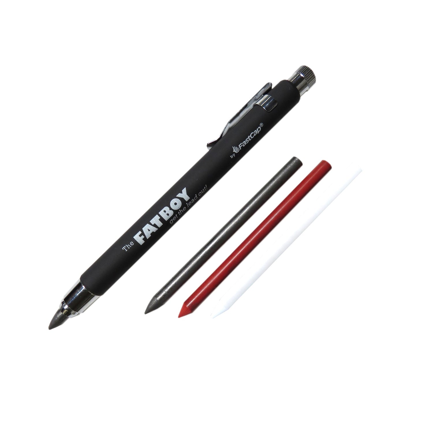 Featuring the FastCap fatboy pencil. This mechanical pencil takes the old nerdy pacer and takes it to the next level. All the convenience of a mechanical pencil with the strength of a carpenters pencil. It can be used with HB lead, red crayon, or white soapstone (one of each included).
