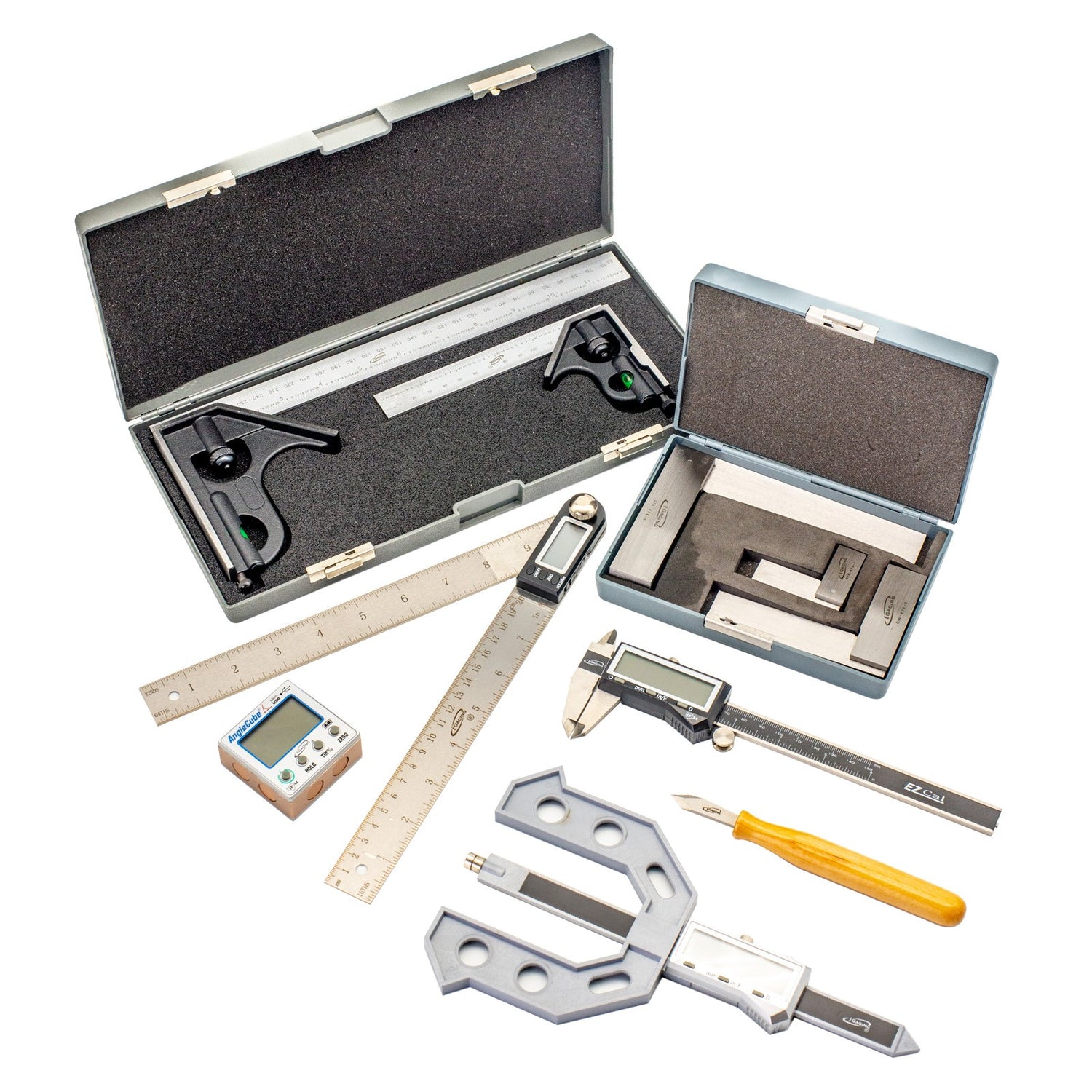iGaging 10-Piece Ultimate Measuring Kit Square Protractor Caliper Gauge