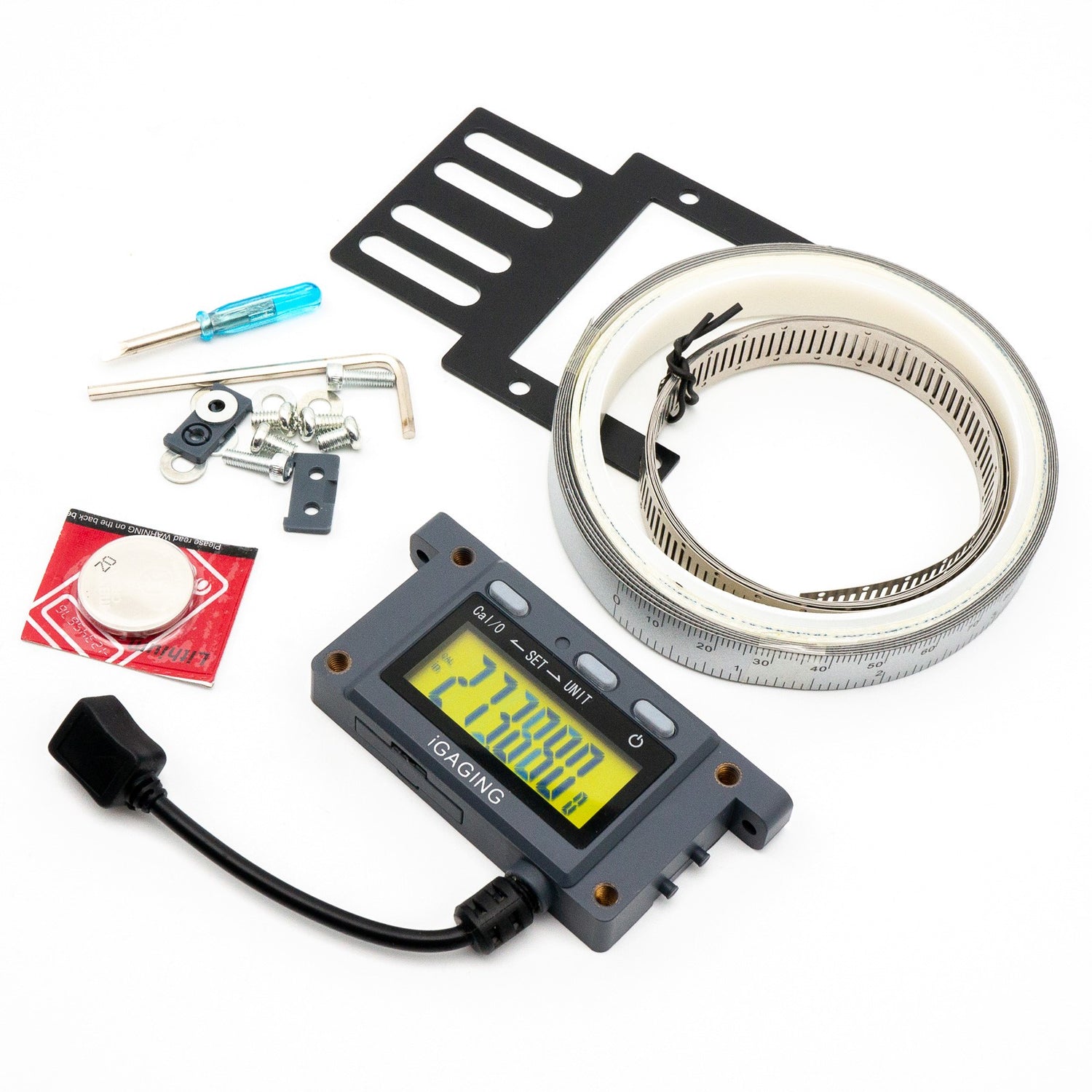 The large, easy to read display reads metric in 0.05mm increments as well as decimalised and fractional imperial in 1/64in increments and measures at 120in per second. The readout can be easily installed using magnets, double face tape, or screws. Vertical and horizontal slider mounting hardware is included.