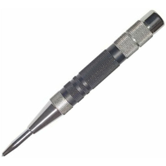 An automatic centre punch is a hand tool designed to create a dimple or small indentation in a material, serving as a guide mark for drilling or starting screws. It operates through a spring-loaded mechanism; when pressed against the surface with sufficient force, the internal spring is compressed and released, driving the punch tip into the material without needing a hammer. This tool is invaluable for precise positioning in drilling operations, ensuring that drill bits do not wander from the intended start point.