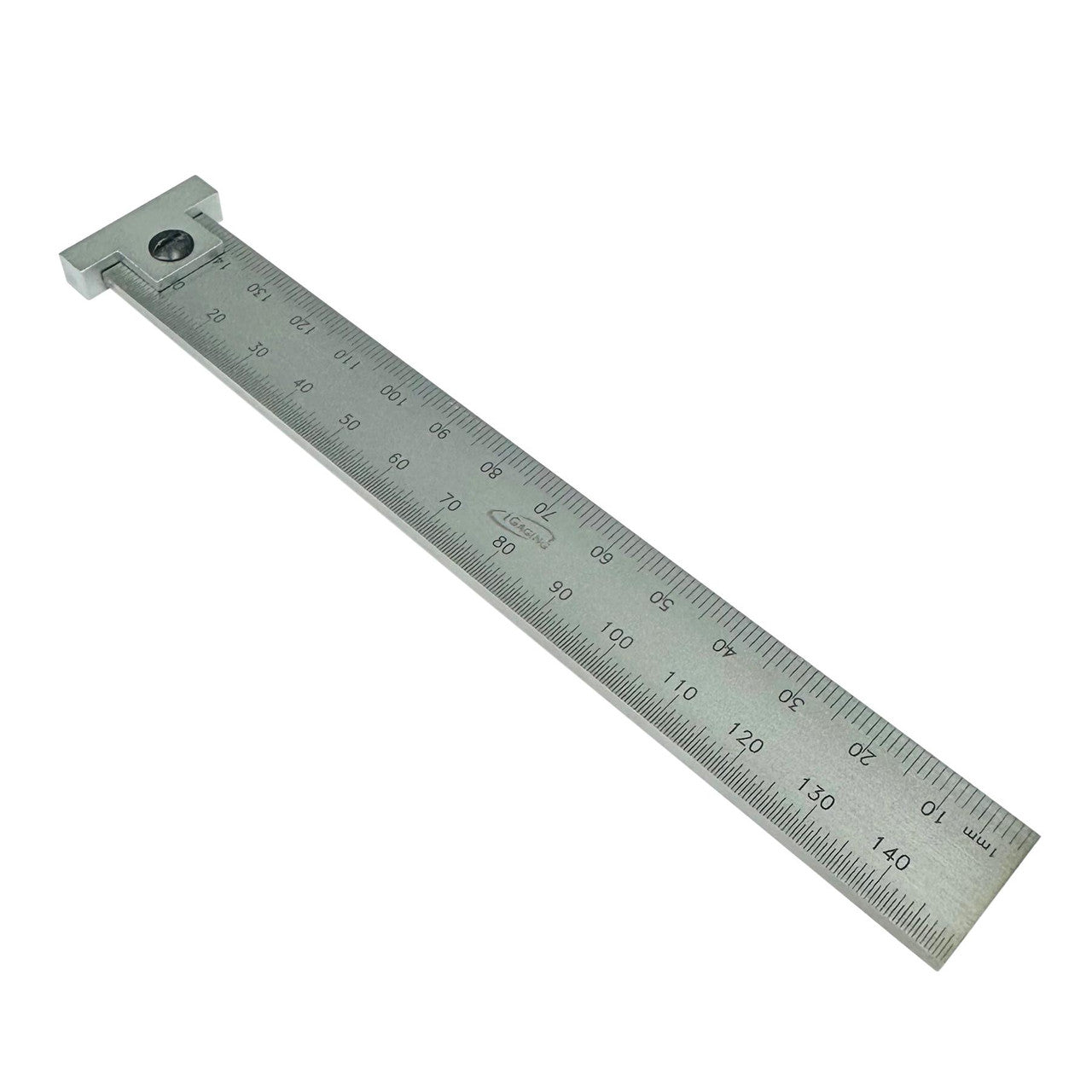 The iGaging stainless steel hook rule is marked with a metric scale on both sides and has a detachable heavy-duty hook at one end.