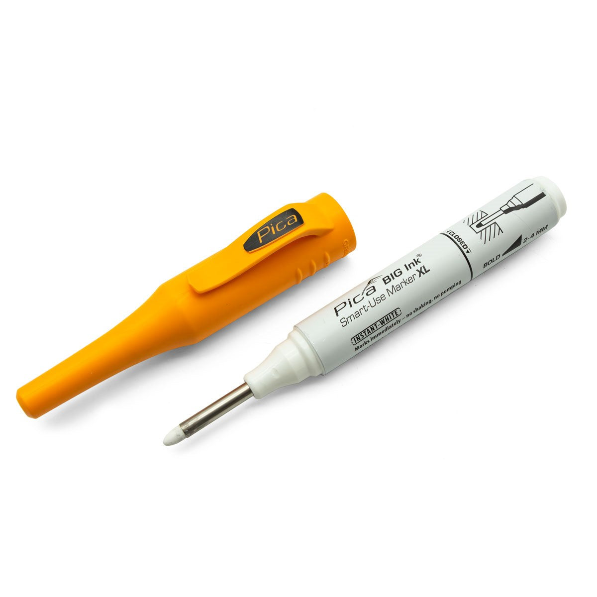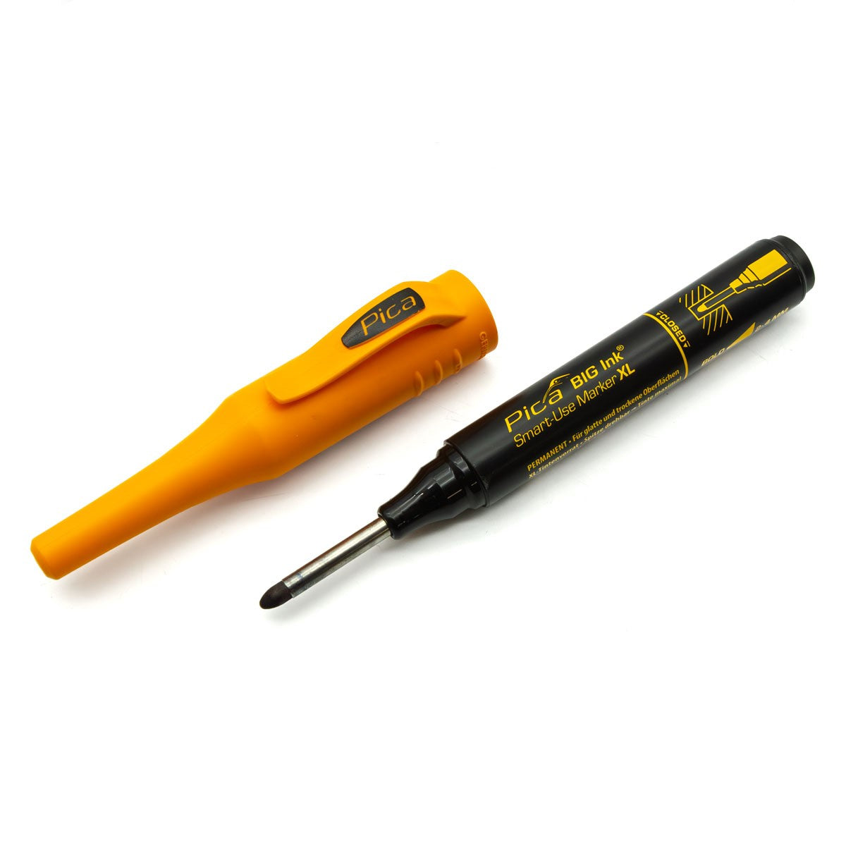 The Pica Big Ink Smart-Use Marker XL is a permanent marker and deep hole marker in one. Suitable for all glossy and dry surfaces, it combines strong and highly visible markings with pinpoint accuracy. The extra large ink reservoir and reversible tip means this marker lasts and lasts. A top-quality marking tool for both the DIYers and the professionals who need to make their mark.