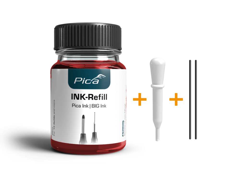 The ink refill set consists of an ink bottle, a pipette and 2 replacement wicks for Pica Ink & Pica BIG Ink markers.