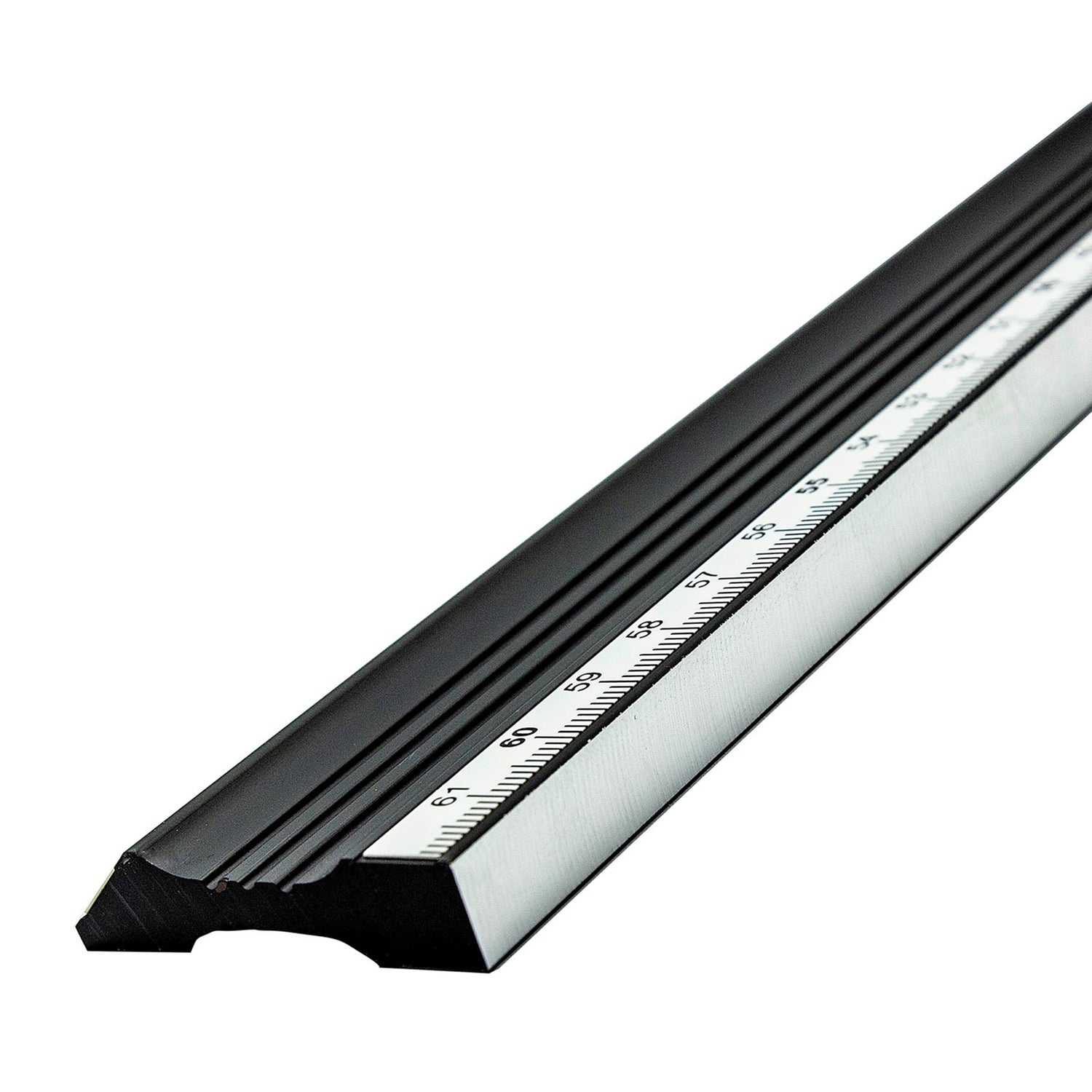 They feature an 11mm-wide lapped flat sole on one edge so that it easily stands upright. The fine 3mm-wide edge is accurate to the British Standard of 0.075mm over the 965mm length. Anodised black for long life, durability and visibility in the workshop. They show Metric graduations on both edges.