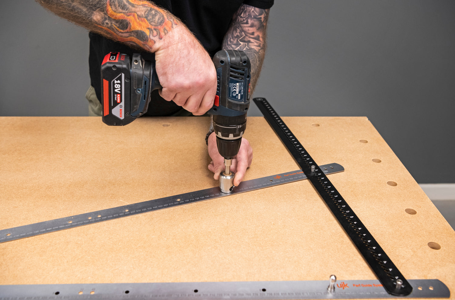 The UJK Parf MkII Guide System is a versatile jig system that allows you to create custom benchtops, portable cutting boards, or multifunction table (MFT style) tops with 20mm hole patterns based on Pythagoras' theorem. This system guarantees perfect, quick, and easy 45° and 90° cuts every time, making it an invaluable tool for both professional trades and home workshops alike. The British made MkII version preserves and guarantees the long-term accuracy of the jig while improving ease of use.