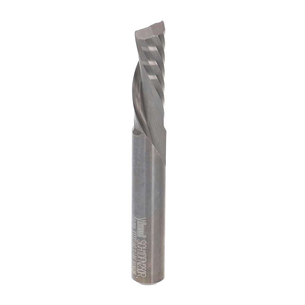 Designed for CNC routing with large gullet space for high chips removal. Suitable for cutting through pockets, grooving and plunging with a perfect finishing on laminates, wood composites and solid wood. Features upcut helix for good chip flow and upward chip removal for best finish on the upper side of the panel.