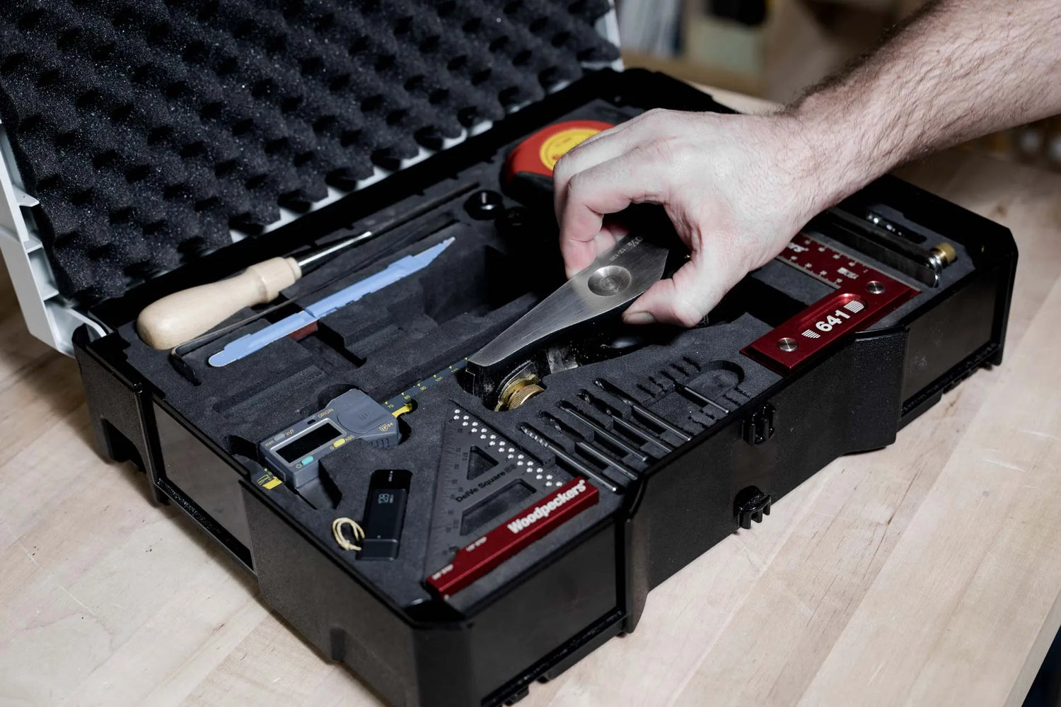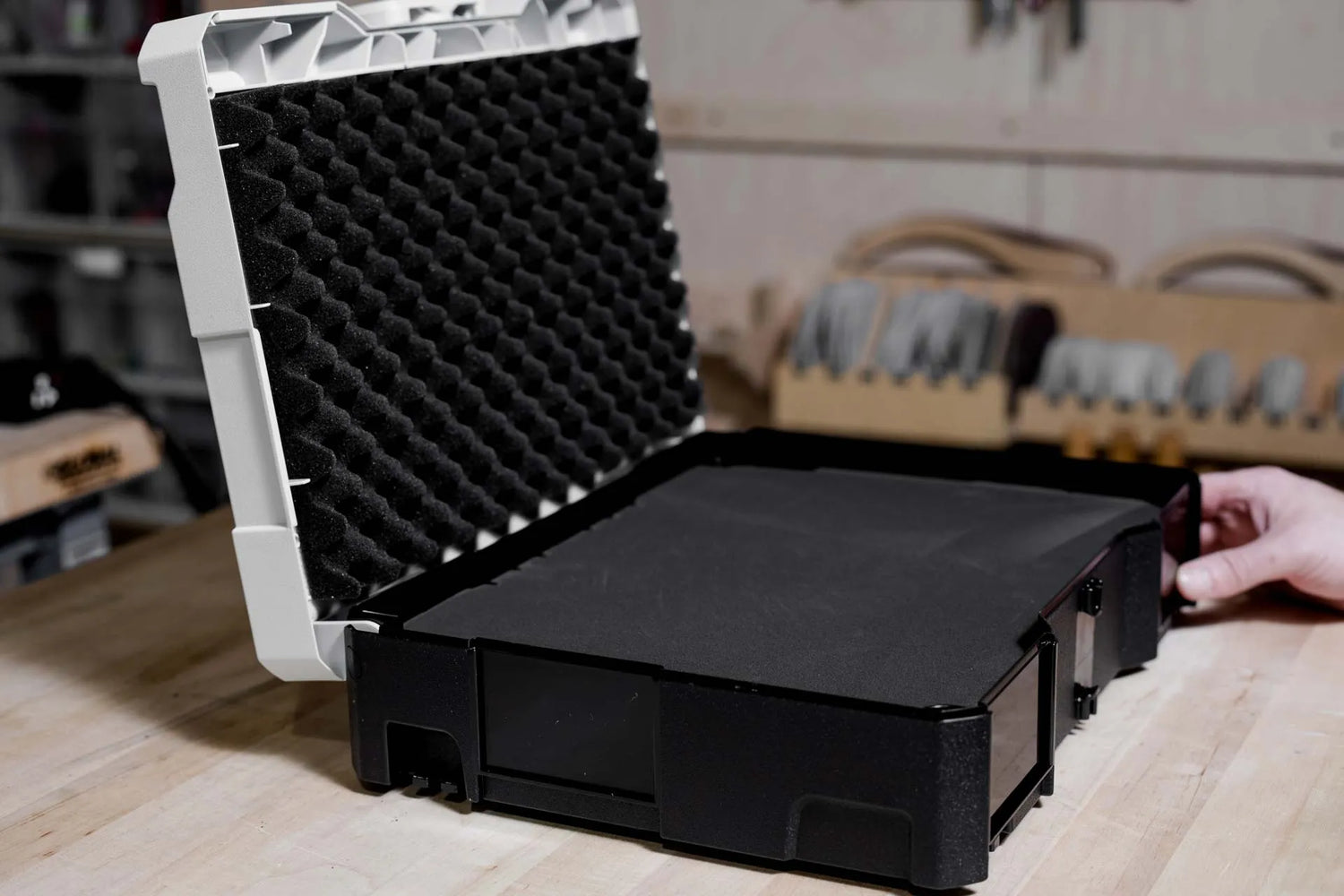All Systainers share an identical footprint for easy stacking, storing, and transport. You can stack the SYS-1 on top of Origin's Systainer or any other Systainer. Tools and accessories shown in the foam are not included; they are for illustrating customization only. But the ready-to-cut Origin files for this layout (and many others!) are available for FREE on ShaperHub!