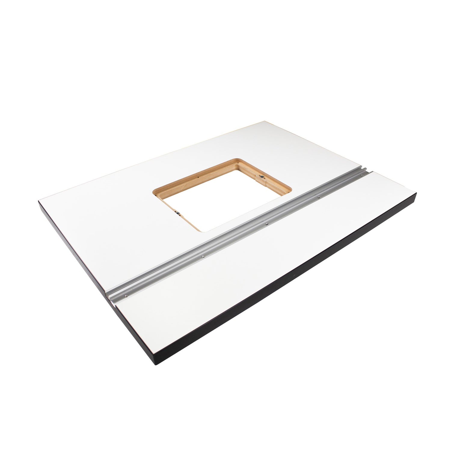 This melamine work surface is smooth, flat, abrasive and dent resistant. This is a very durable yet economical work surface for your router table.