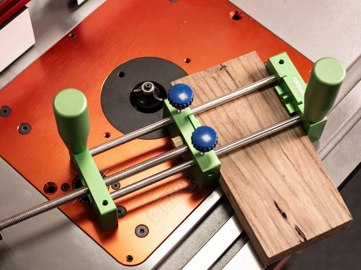 Torquata’s solution to the problem of finger retention is their ingenious Small Workpiece Jig. It holds smaller parts securely and allows you to manoeuvre them across the work surface with your hands safely out of harm’s way. Perfect for router table users who regularly machine small parts.