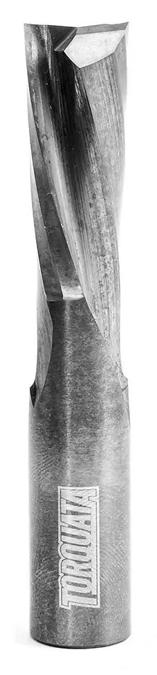 Torquata solid carbide spiral bits begin life as extra-hard C4 micro grain carbide, ground using sophisticated 6-Axis C.N.C. to grind their spiral geometry. The precision of the spiral and hardness of carbide allows for a very sharp edge and typically longer edge sharpness. A straight bit can't compete with that. The geometry and top point allow you to plunge into your work like a drill, using a constant shearing action when making the cuts.
