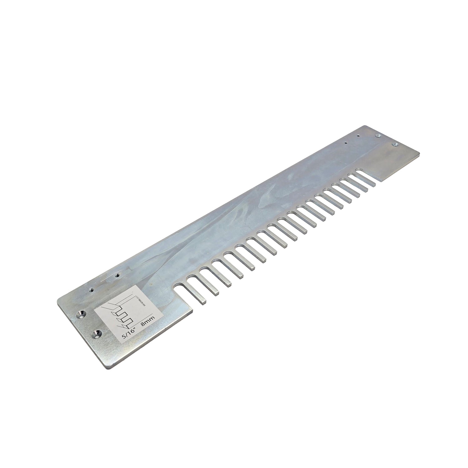 This laser cut zinc plated steel template will allow you to use your Trend 300mm Dovetail Jig to create 5/16in Box Joints.