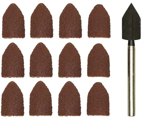Sanding cones measure 9mm in diameter. They are supplied with 5x 80 grit, 5x 150 grit sanding cones and the Tool Shaft.