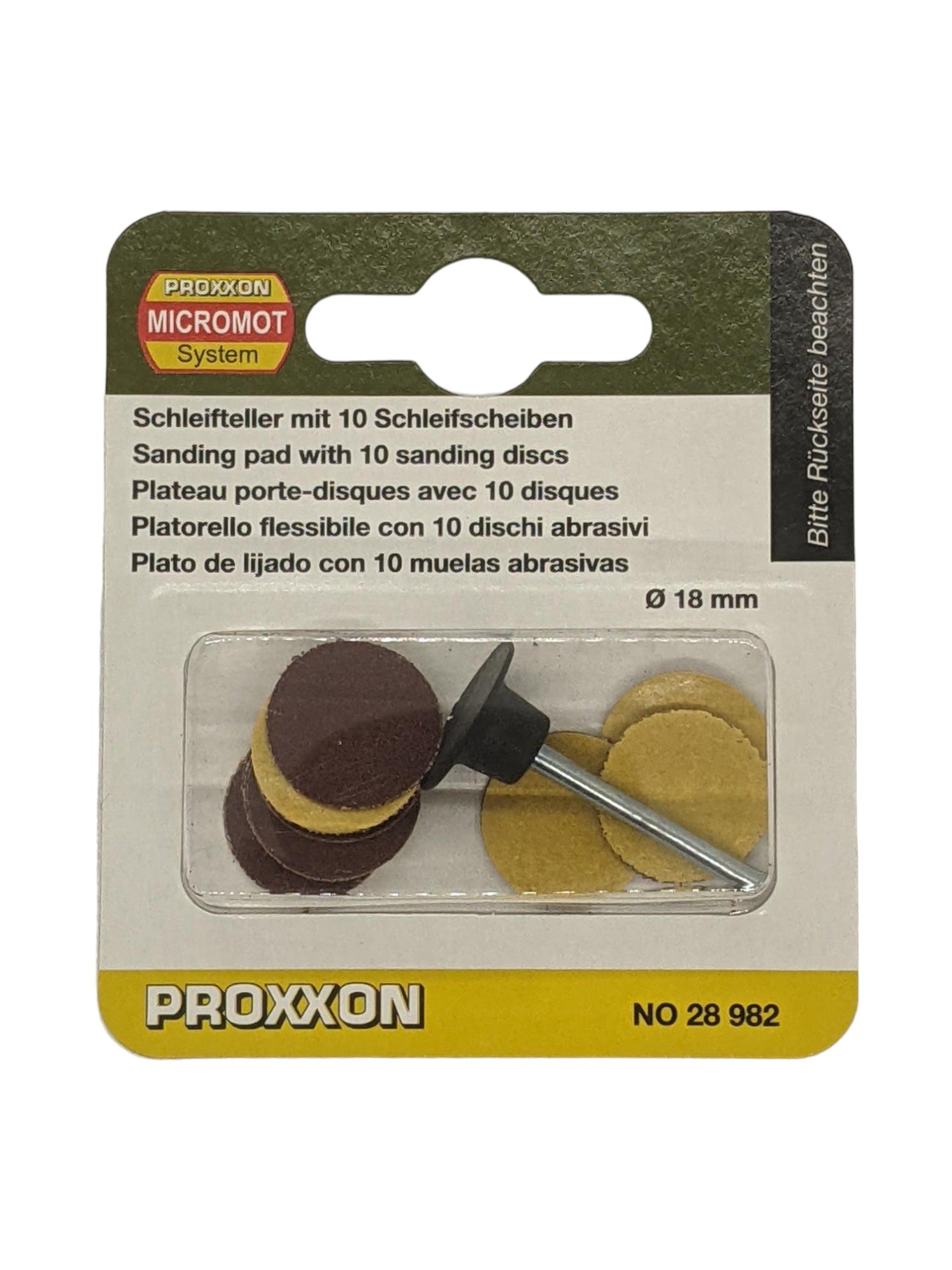 PROXXON Pack of 10 Corundum Sanding Discs 18mm Plus Sanding Pad for Rotary Tools