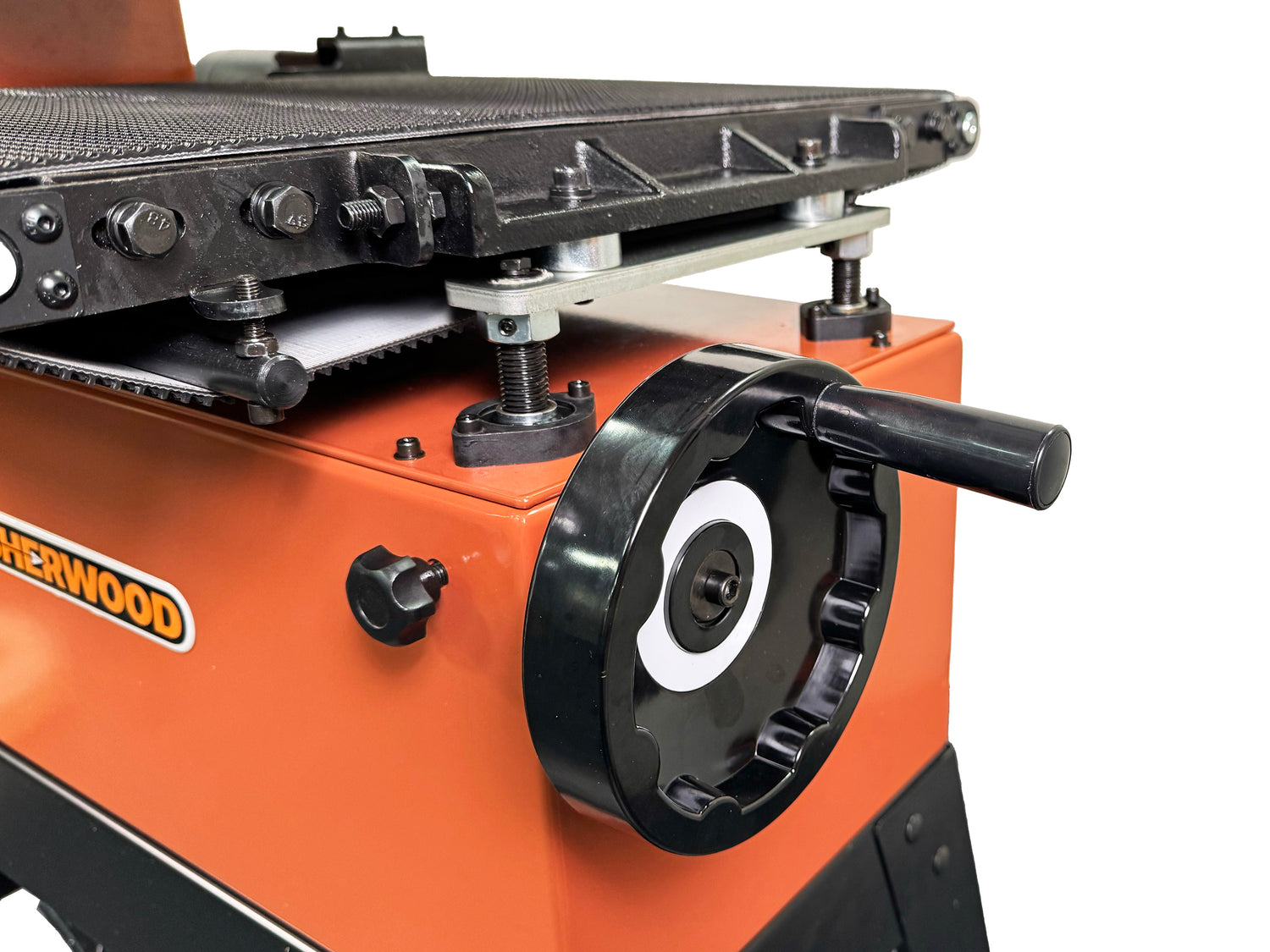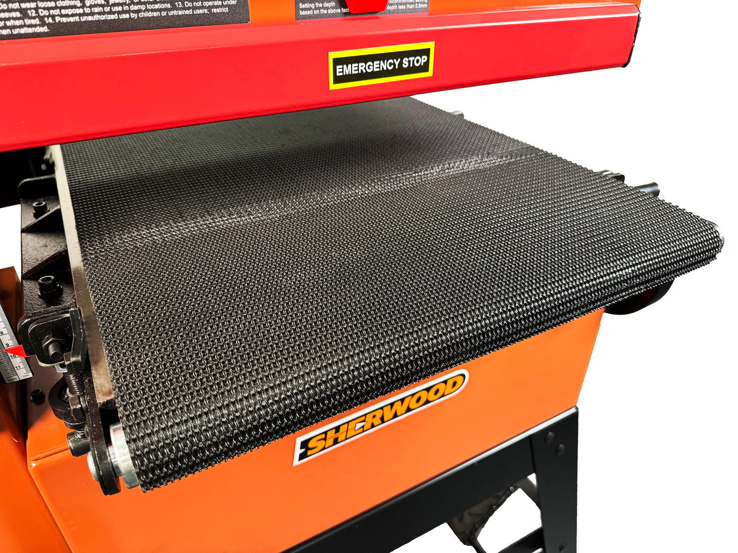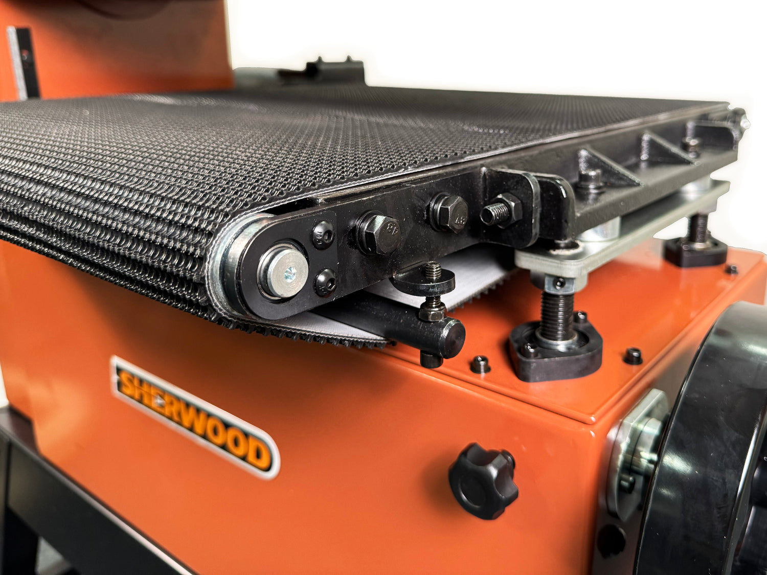 The Sherwood 18in Drum Sander is a precise sanding machine. The sanding drum is fixed to eliminate vibration, with the conveyor table movement driven by four broadly spaced heavy duty drive screws. This means the sanding drum stays rigid leading to vibration free performance.