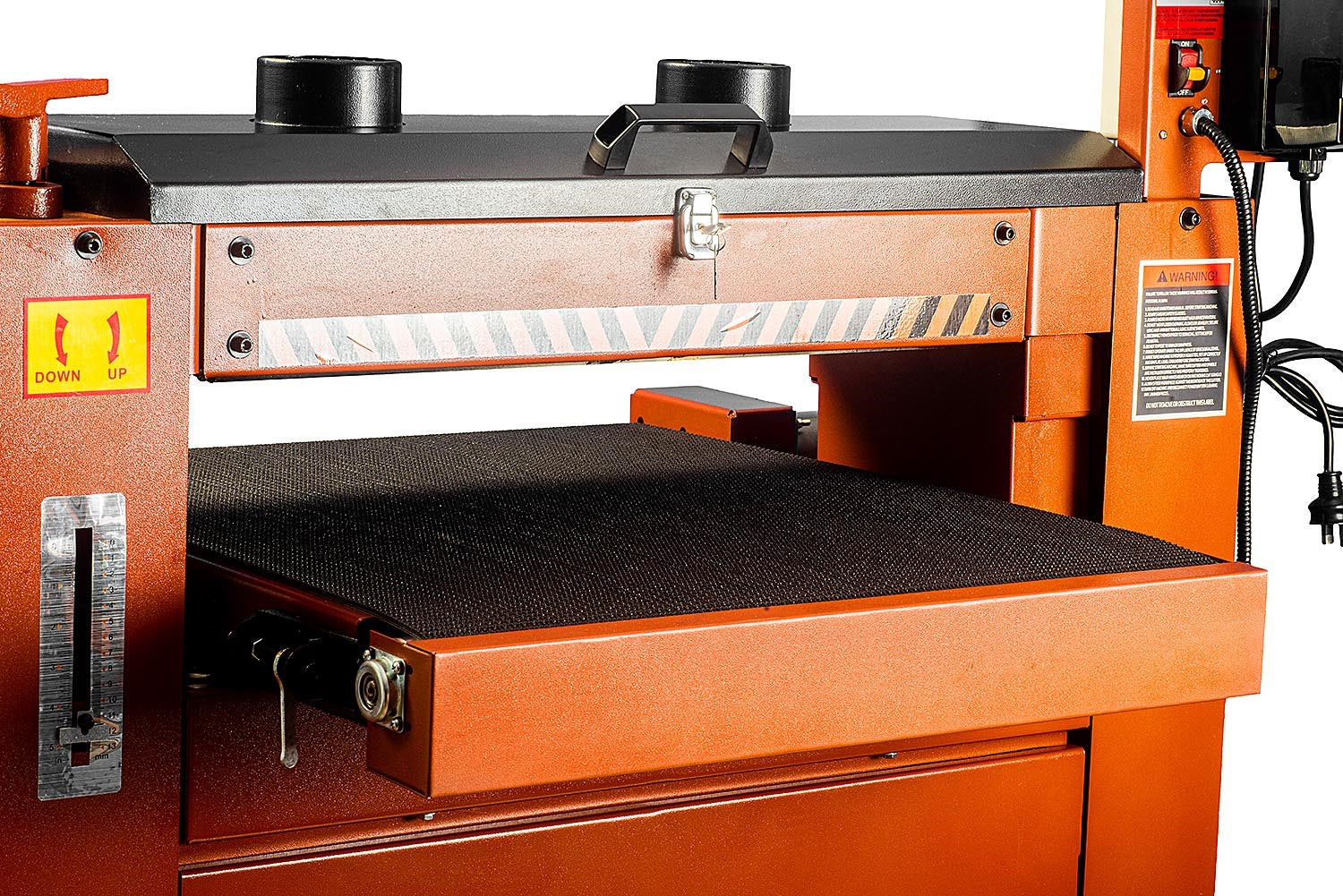 Featuring a 125W variable-speed feed motor, you can tailor your feed rate to match your material and grit combo. Two integrated 100mm (4in) dust ports positioned at the drum cover maximise dust collection for a cleaner, safer workspace.
