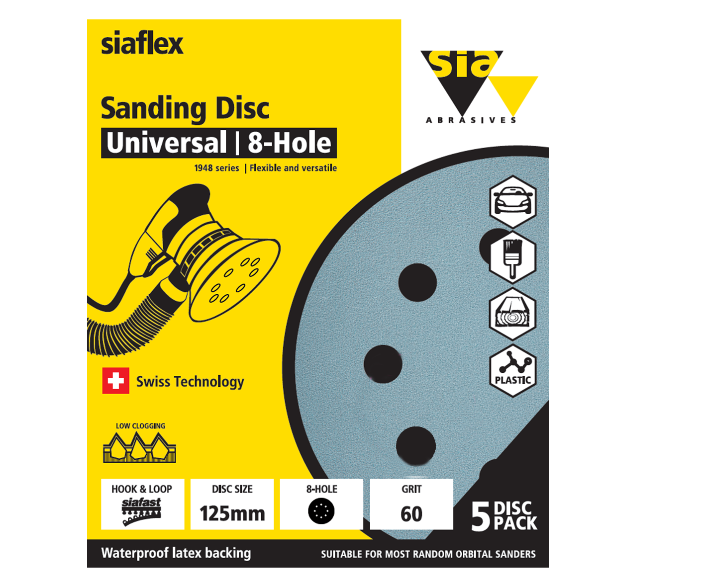 SIA Abrasives 1948 siaflex Sanding Disc 125mm 8-Hole Pack of 5