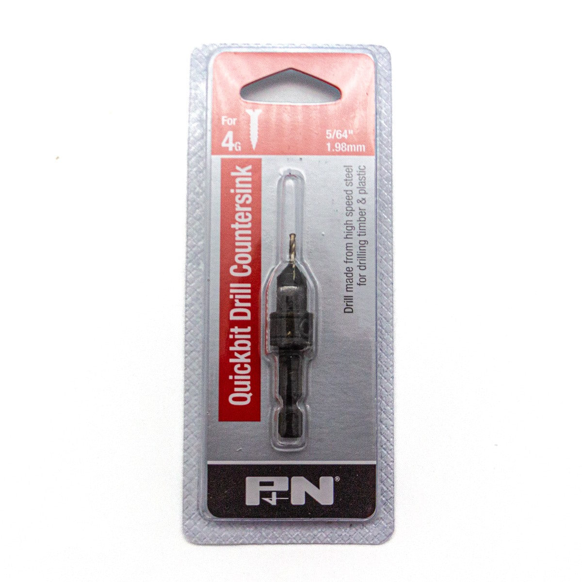 P & N Quickbit Drill Countersinks are designed to drill a screw pilot hole and countersink in one action. In addition, this four-piece set has been specifically designed to provide quick changeover via the standard 1/4in shanks on each bit.