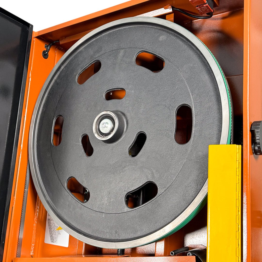 Whether you need to cut curves in large panels or crosscut long beams, the Sherwood 24in Industrial Bandsaw’s throat offers a huge 580mm of clearance.