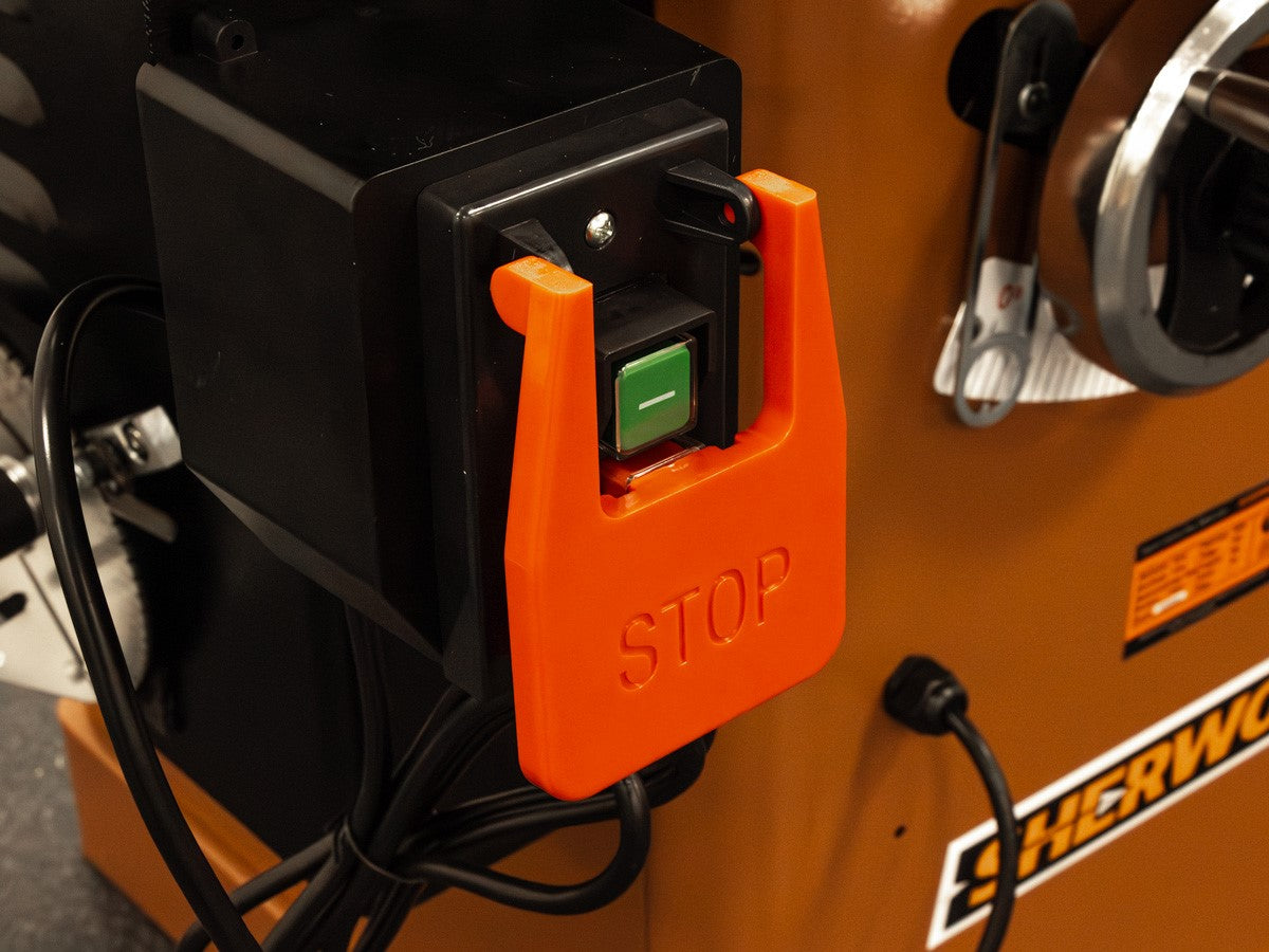 The Sherwood 12in Contractors Table Saw has a big, obvious, knee-high safety switch. So, if you are a bit nervous, or you have an apprentice, you know the saw is easily and quickly killed in time of need.