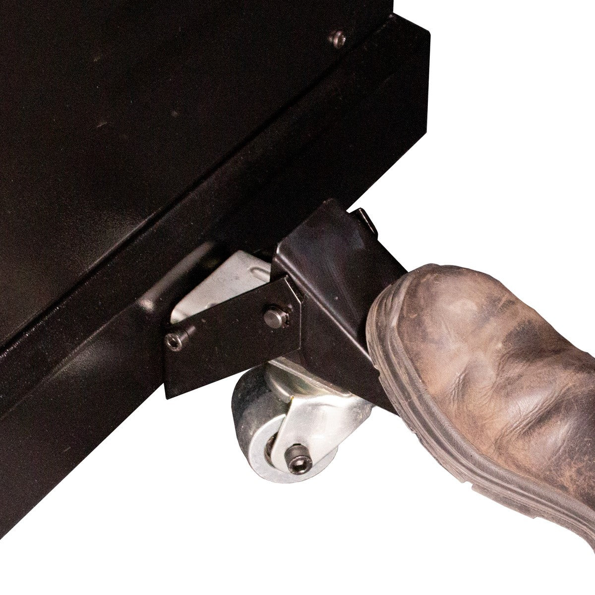 The Sherwood 16in Industrial Thicknesser is mounted on a cabinet equipped with four tough and smooth-rolling castors, allowing you to easily position the machine when needed. In one motion the foot locking knob, locks the castors into place, giving you a stable bed to plane. The inbuilt extendable lifting handles, allow for easy movement with a forklift or joist to manoeuvring into exact position in your workshop.