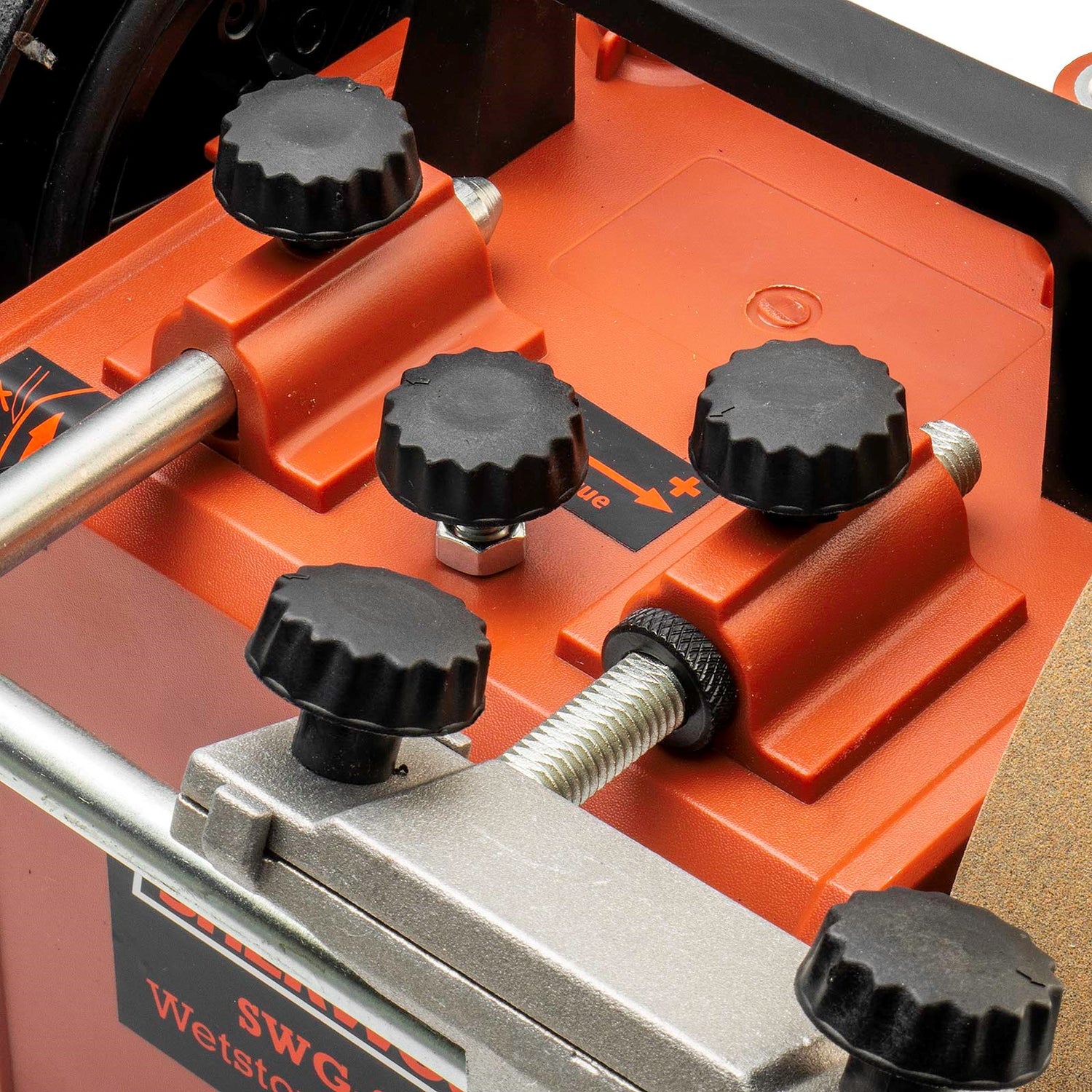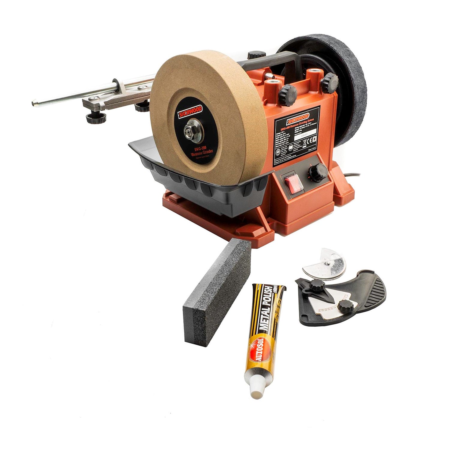 The Sherwood 200mm Wet Stone System offers fantastic performance and versatility in a compact and easy to use machine. The package includes some essential tools and jigs to give you accurate sharpening on a range of different tools. The smooth and responsive variable speed is a plus for such a compact machine. The torque can also be adjusted for more heavier grinding.