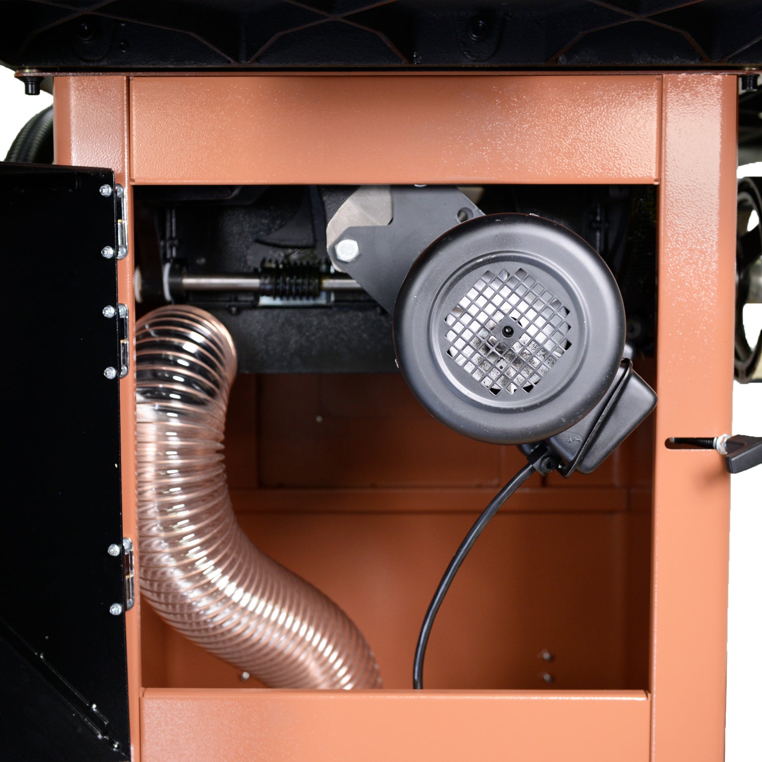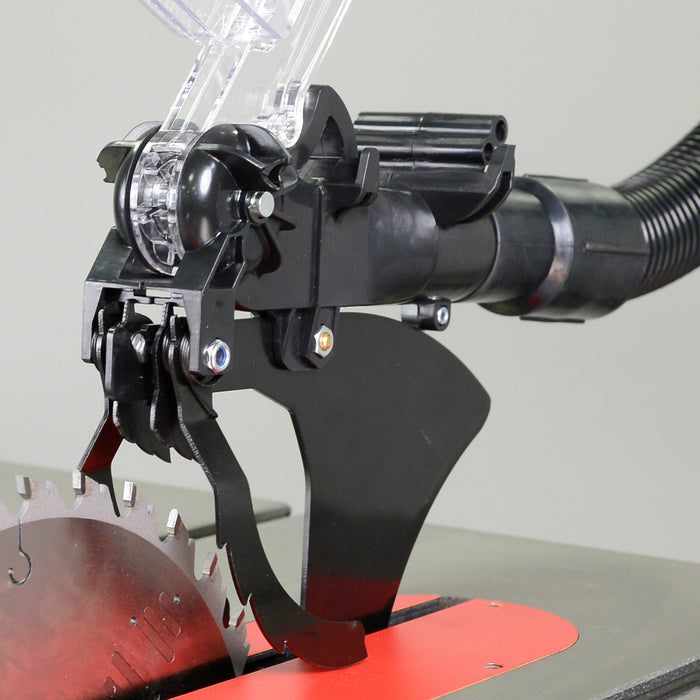Spindle bush set, safety switch, blade guard and dust collection system with both blade and cabinet extraction points.