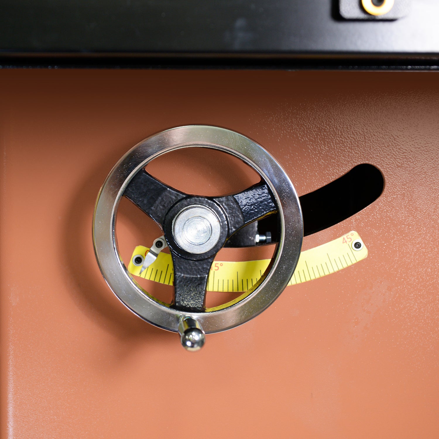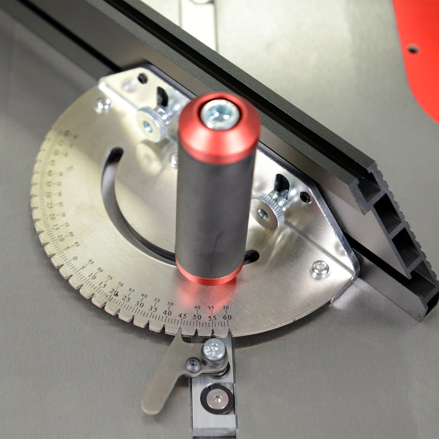 Twin worktable mitre slots, high-quality heavy-duty T-styled fence with hairline readout, 45-degree left tilt, two riving knives with quick release.