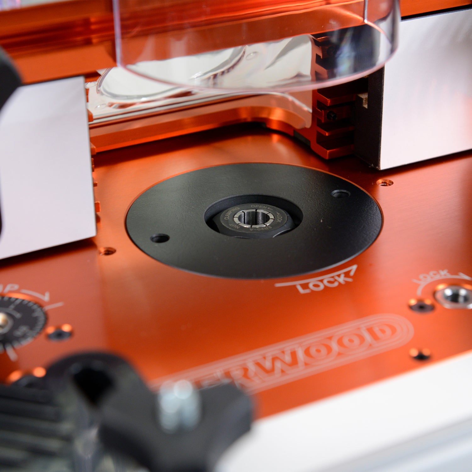 Your router mounting plate can accept a variety of throat insert rings. The insert rings feature a twist lock design, so they are held firmly in position in line with the surrounding surface. Use the inserts rings to minimise the gap around your router bit to eliminate vibration and increase accuracy. Insert spanner included. Use the SKU’s RTIRS-4 & RTIRB on the Timbecon website to learn more.