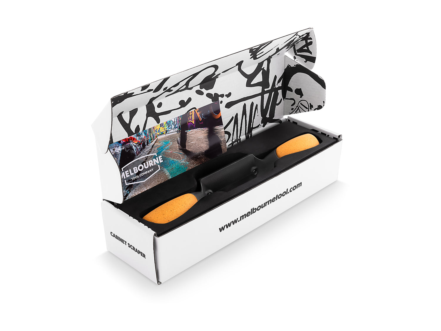 Your MTC Cabinet Scraper is delivered securely packaged in a foam lined cardboard box. Inside is a QR code you can scan to download your comprehensive Owner’s Manual. Visit the Melbourne Tool Company website for additional products, information downloads and video content.